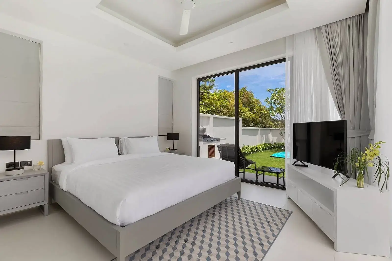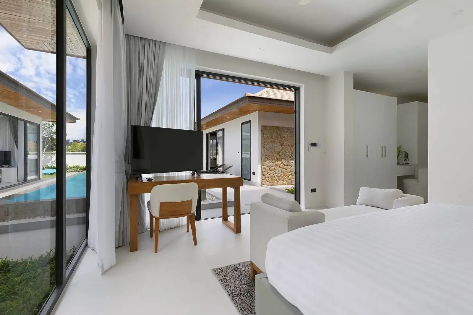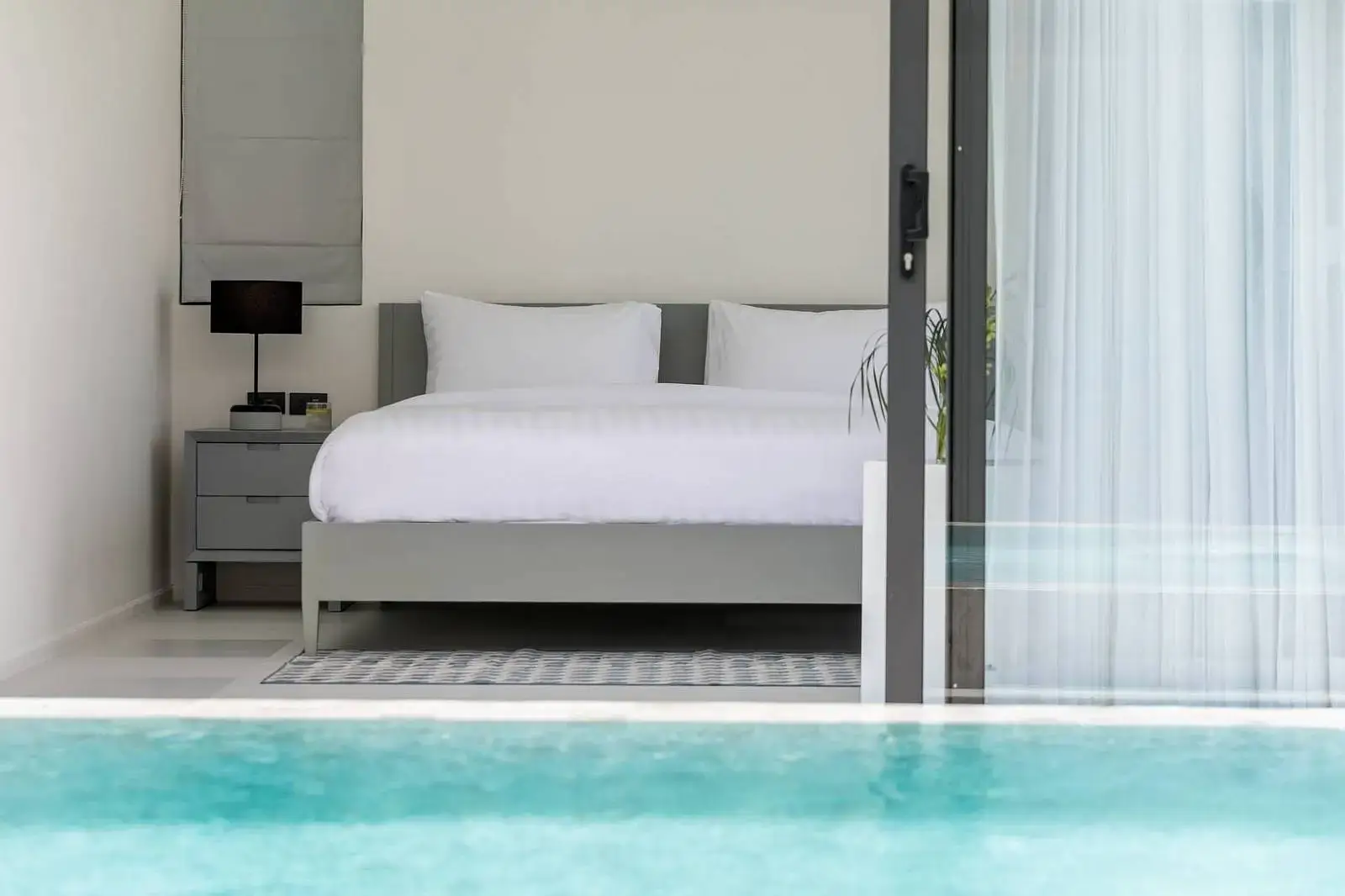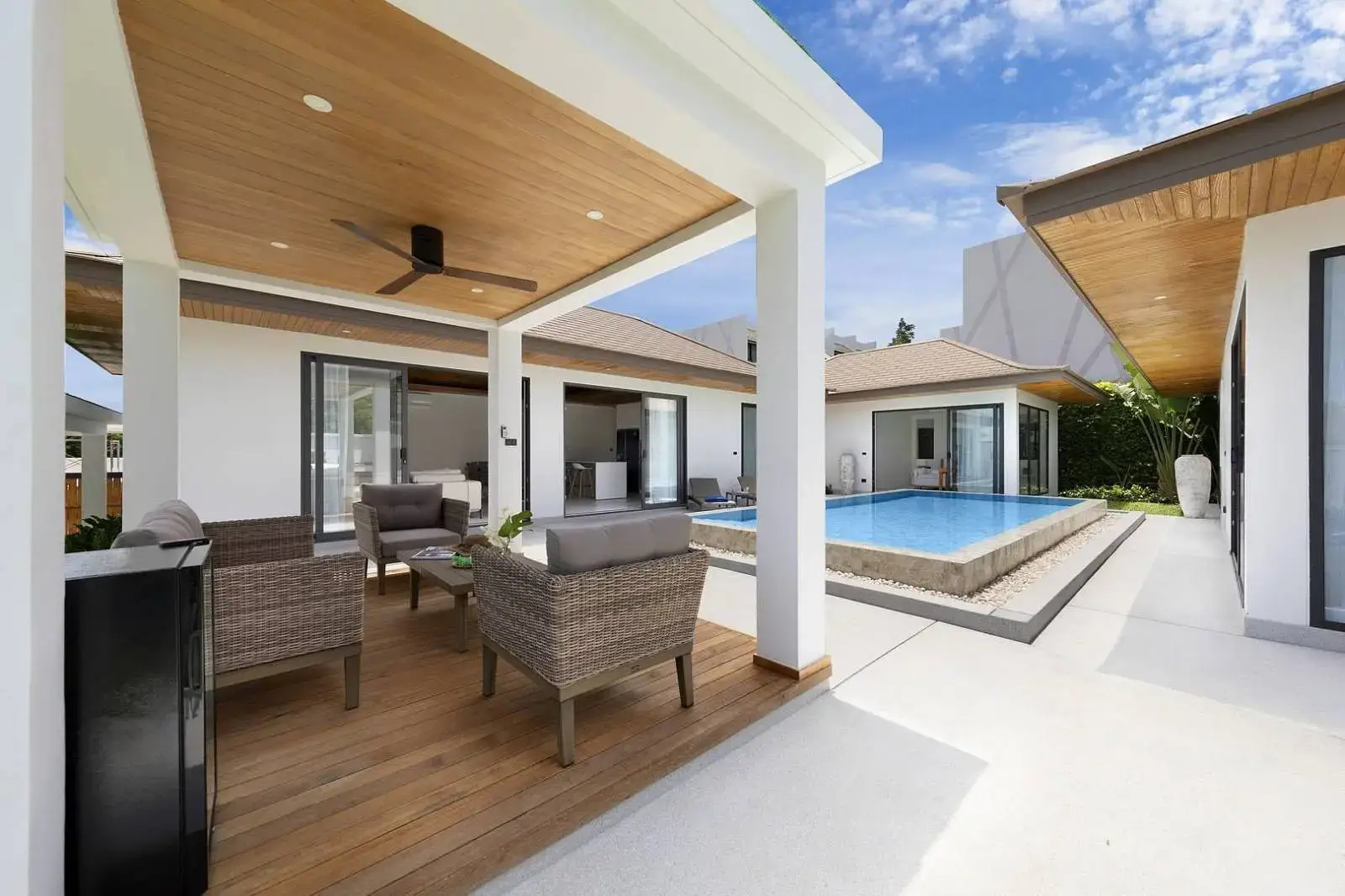 The brand new three bedroom 'Villa Paradise' is well located within the Sunway Villas project just a short walk of 400m to the stunning Choengmon Beach. Along the way you will find an excellent selection of restaurants, bars, convenience stores, thai massage shops and everything else you may need for an amazing and easy vacation on Koh Samui. The villa consists of 3 separate pavilions which are arranged in a Balinese style around an 8m swimming pool.