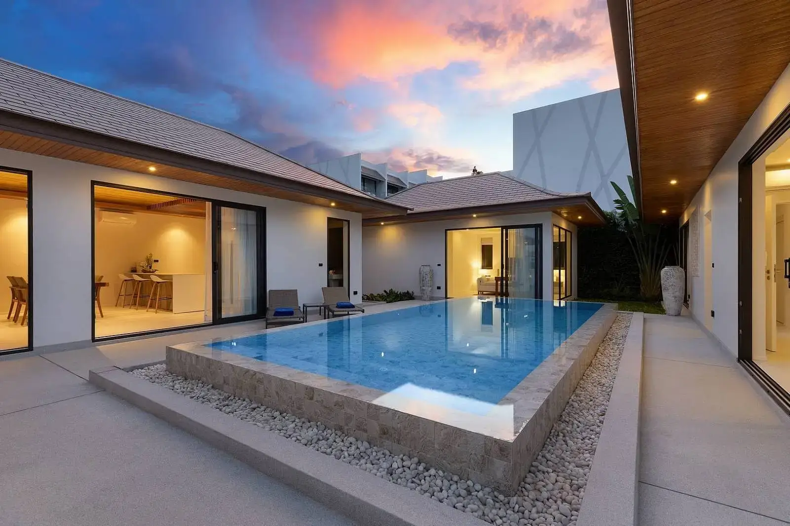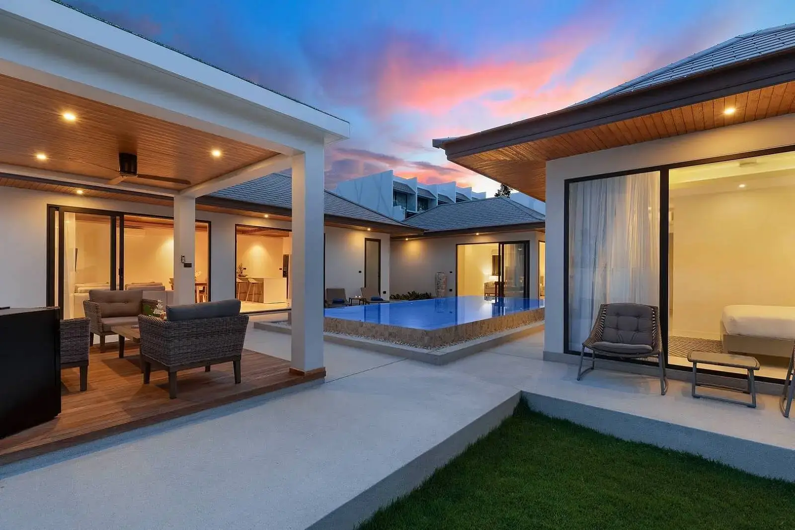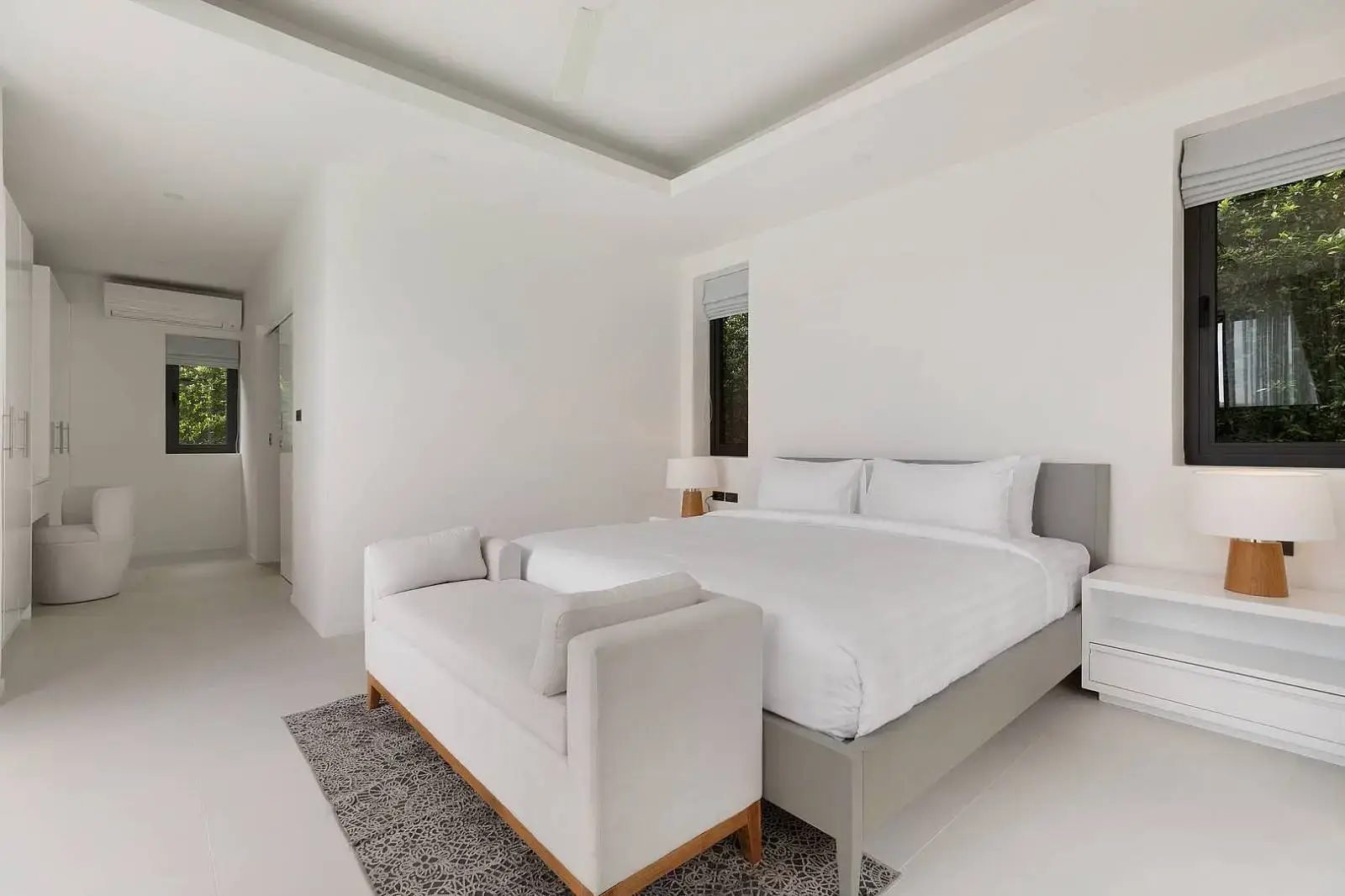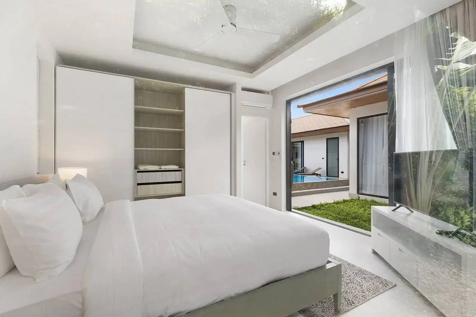 The brand new three bedroom 'Villa Paradise' is well located within the Sunway Villas project just a short walk of 400m to the stunning Choengmon Beach. Along the way you will find an excellent selection of restaurants, bars, convenience stores, thai massage shops and everything else you may need for an amazing and easy vacation on Koh Samui. The villa consists of 3 separate pavilions which are arranged in a Balinese style around an 8m swimming pool.
