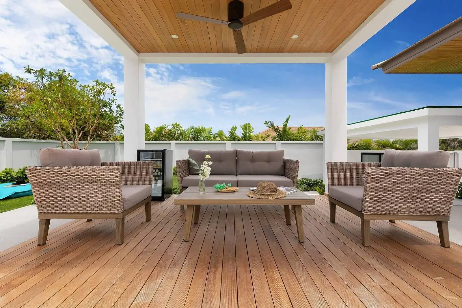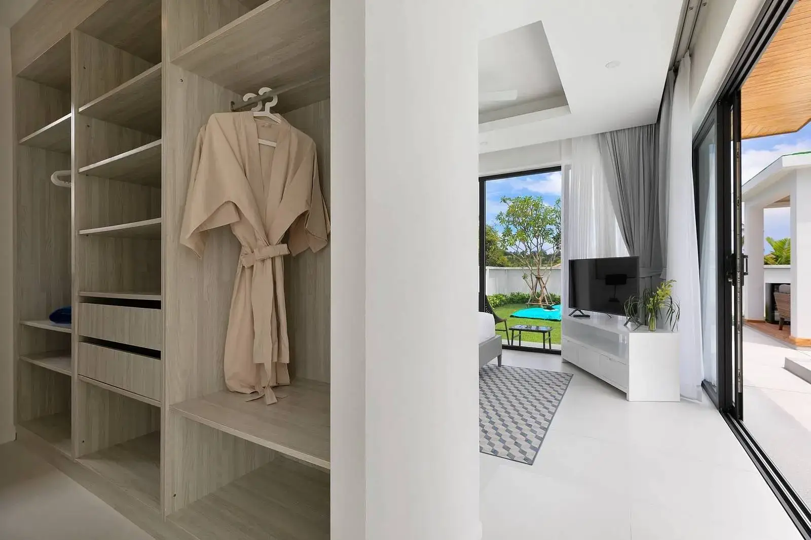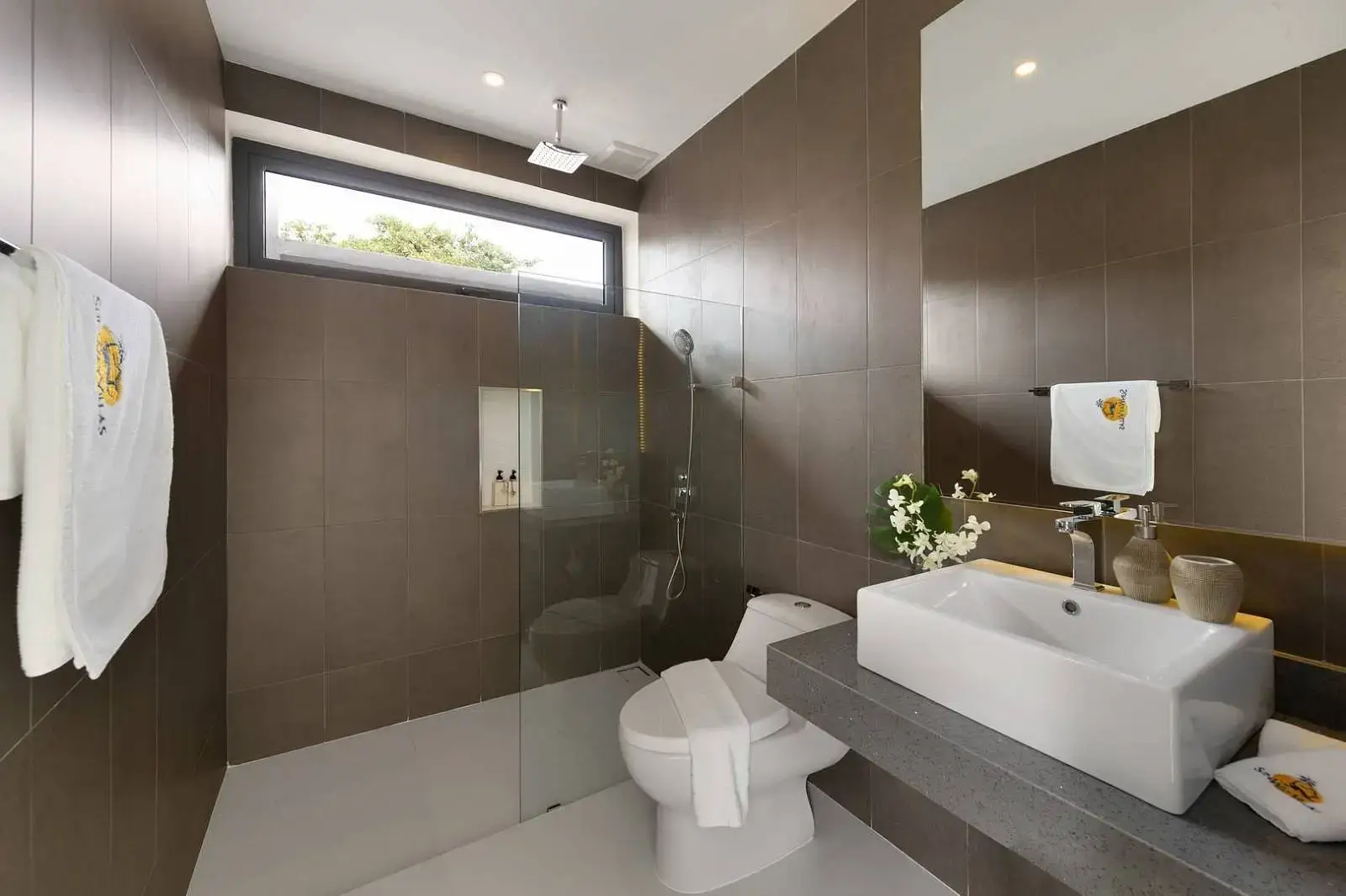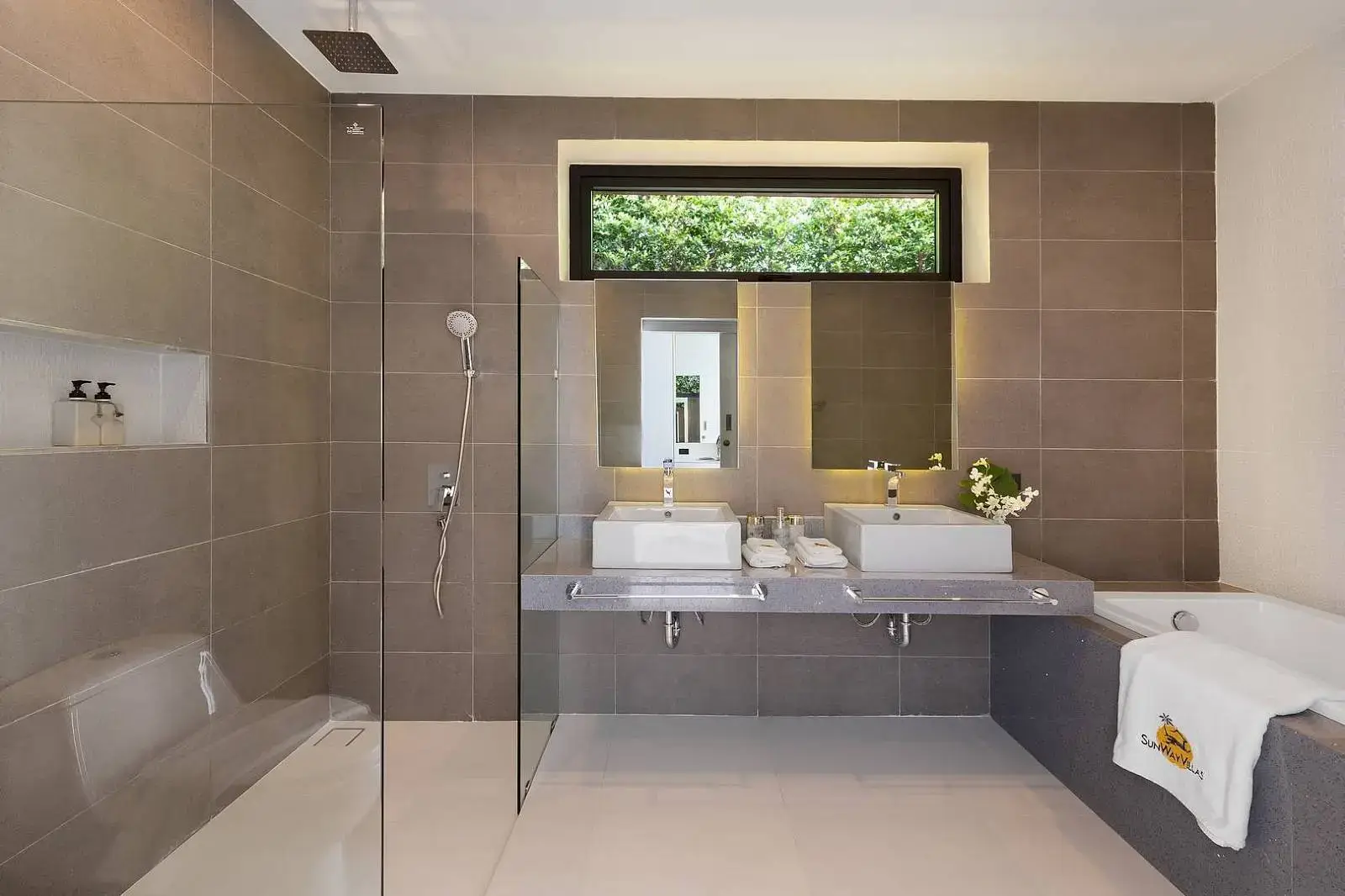 Another pavilion houses 2 bedrooms, with each having an en-suite toilet and shower and built in wardrobes. A large main bedroom with a roomy bathroom with bathtub occupies the entire third pavilion.