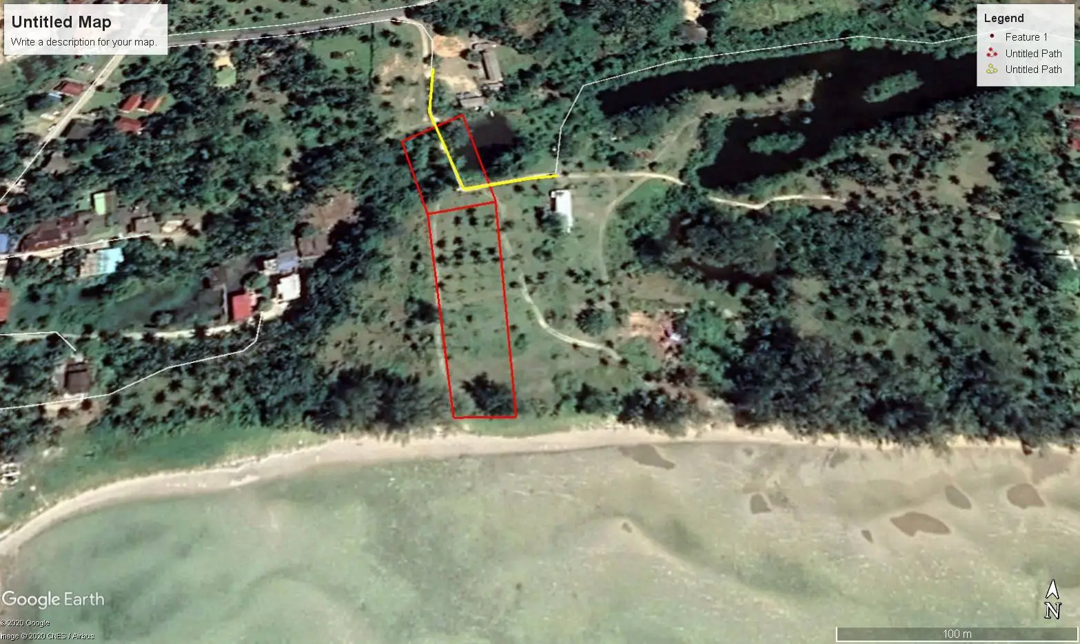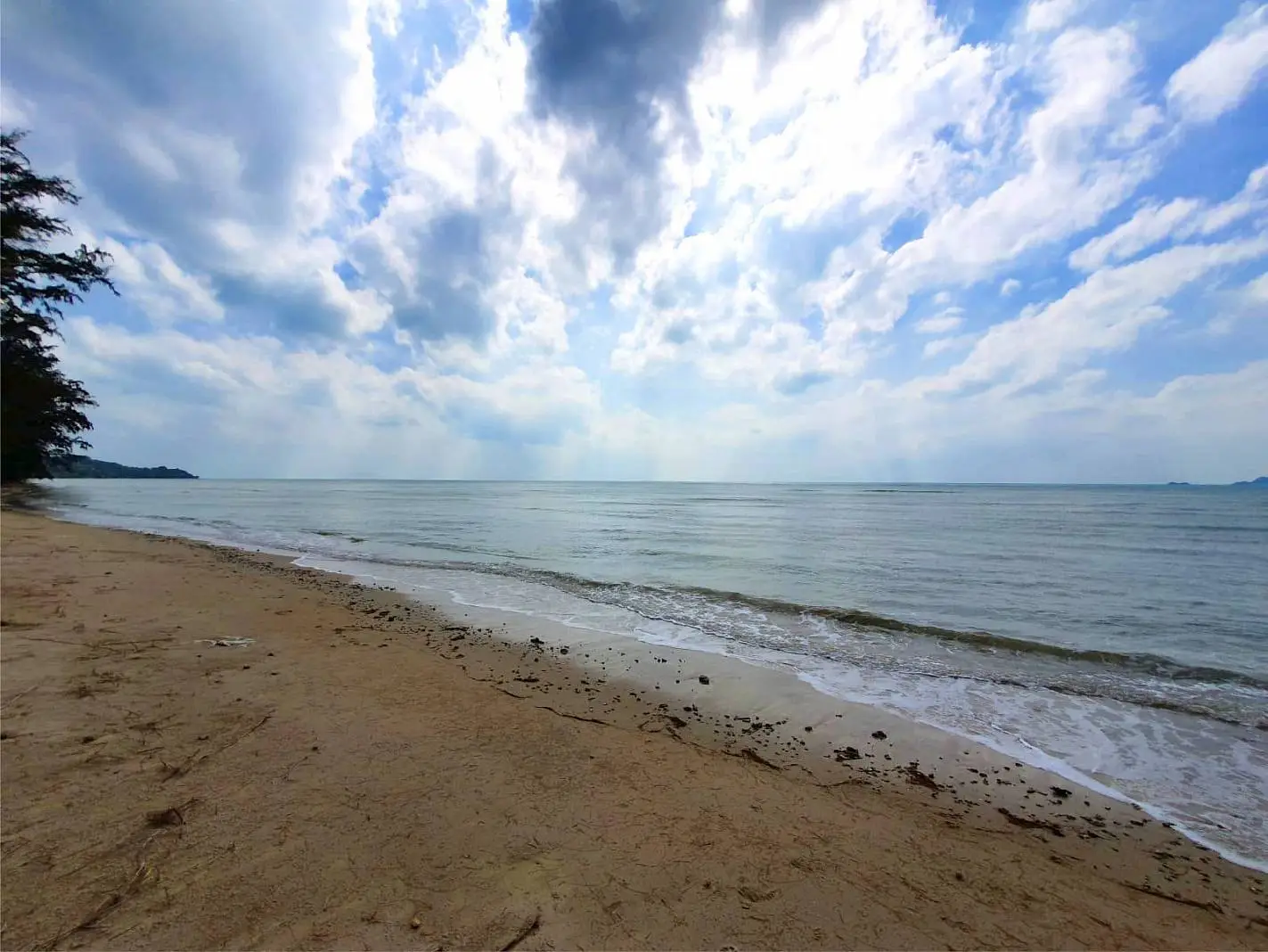 This interesting beach front property is located in peaceful Bangkao. There are two separate land plots. The main plot of 2 Rai with beach frontage and an additional 1 Rai plot. The beach frontage is 32-35 meters in width and the depth back from the beach of the 2 Rai plot is 100 meters allowing a building height of of two to three levels at the back of the property. The 1 Rai plot has a natural pond and is bisected by an access road to a neighbouring plot, so may not be suitable to build on but could be developed as a spectacular garden entrance to the beach front plot. The beach frontage faces south avoiding the intense direct morning and afternoon sun off the water.