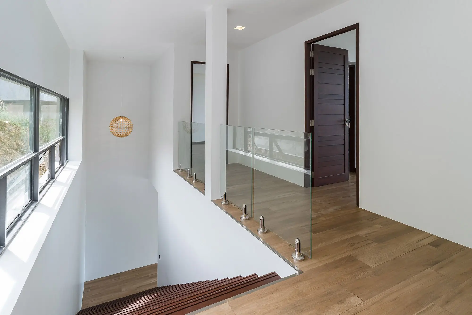 The cubic silhouette of the complex's units is beautifully simple and clean. The surrounding area is landscaped into a well-groomed green space with lovely cascades of lawns and tropical plants. The natural colour palette of the interiors features tasteful colour accents. The contemporary style of the finishing and furniture conveys a feeling of freedom while maintaining a homely atmosphere. Wide panoramic windows and glass floor-to-ceiling panels provide a wonderful view of the surrounding landscapes from any corner of the house.