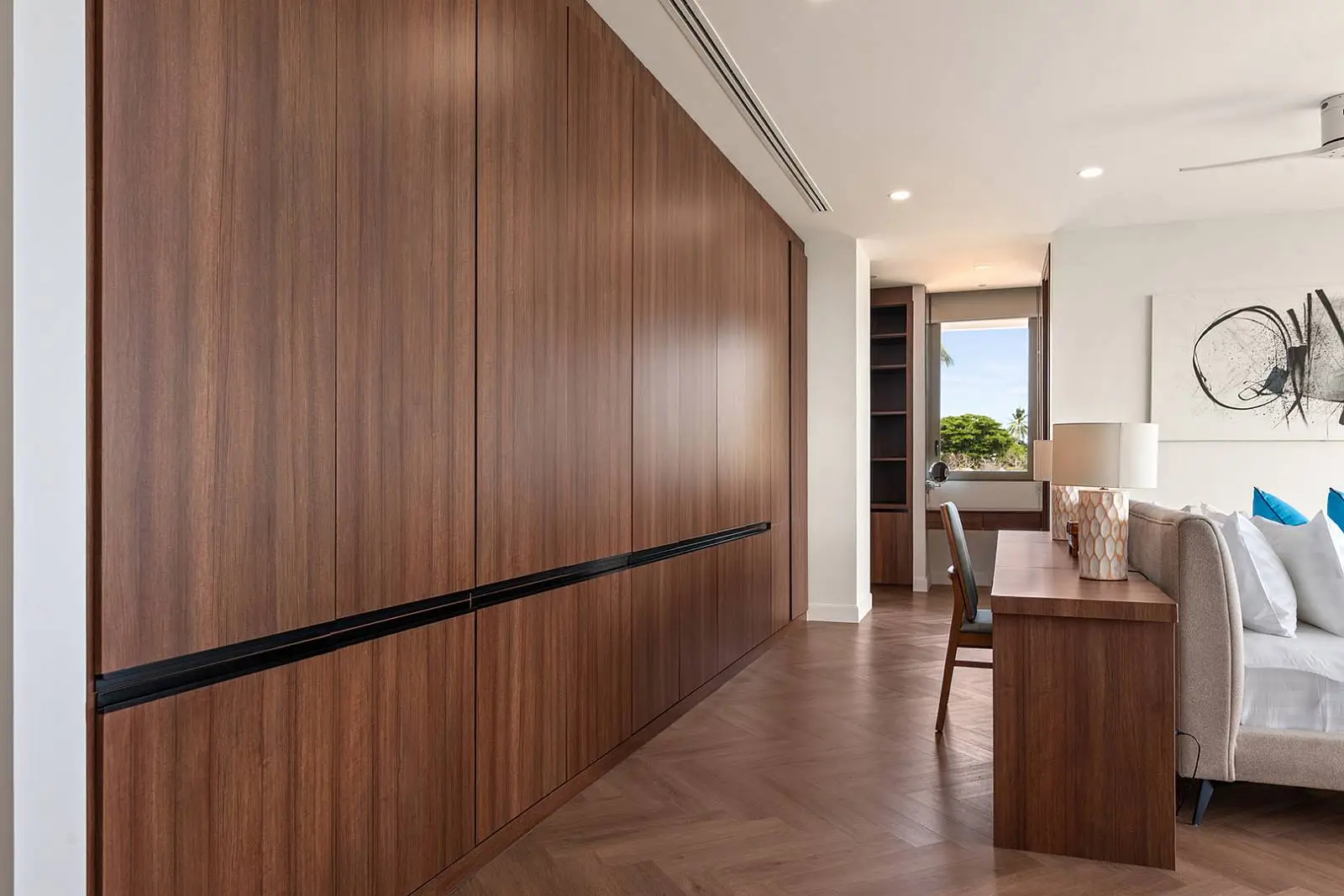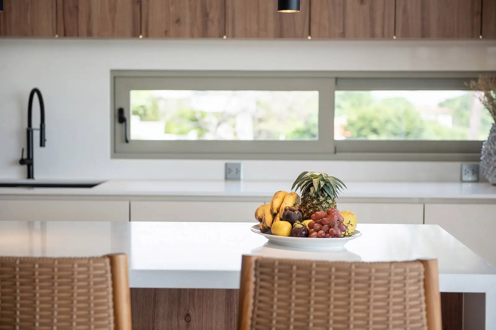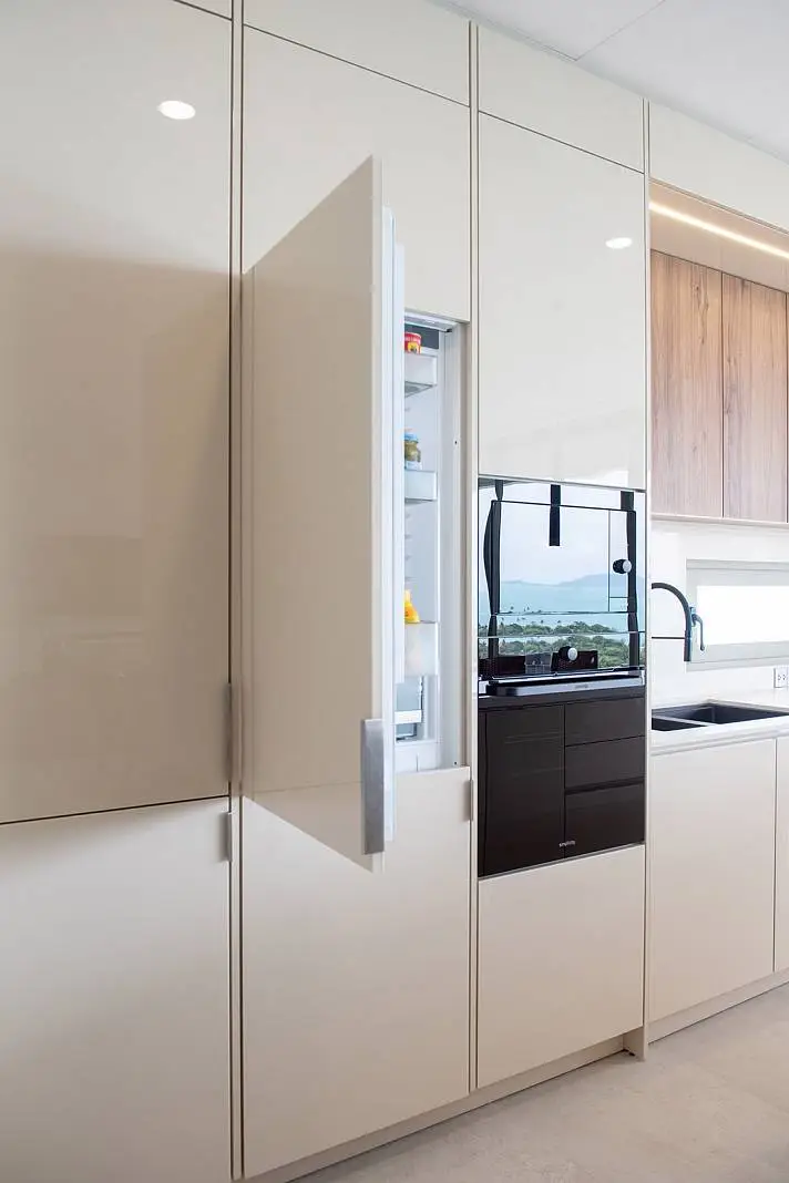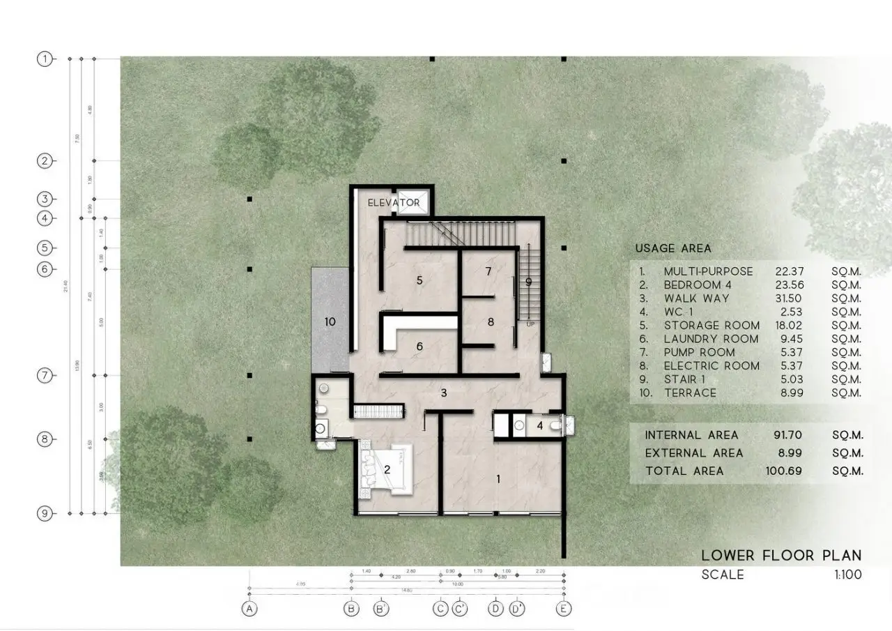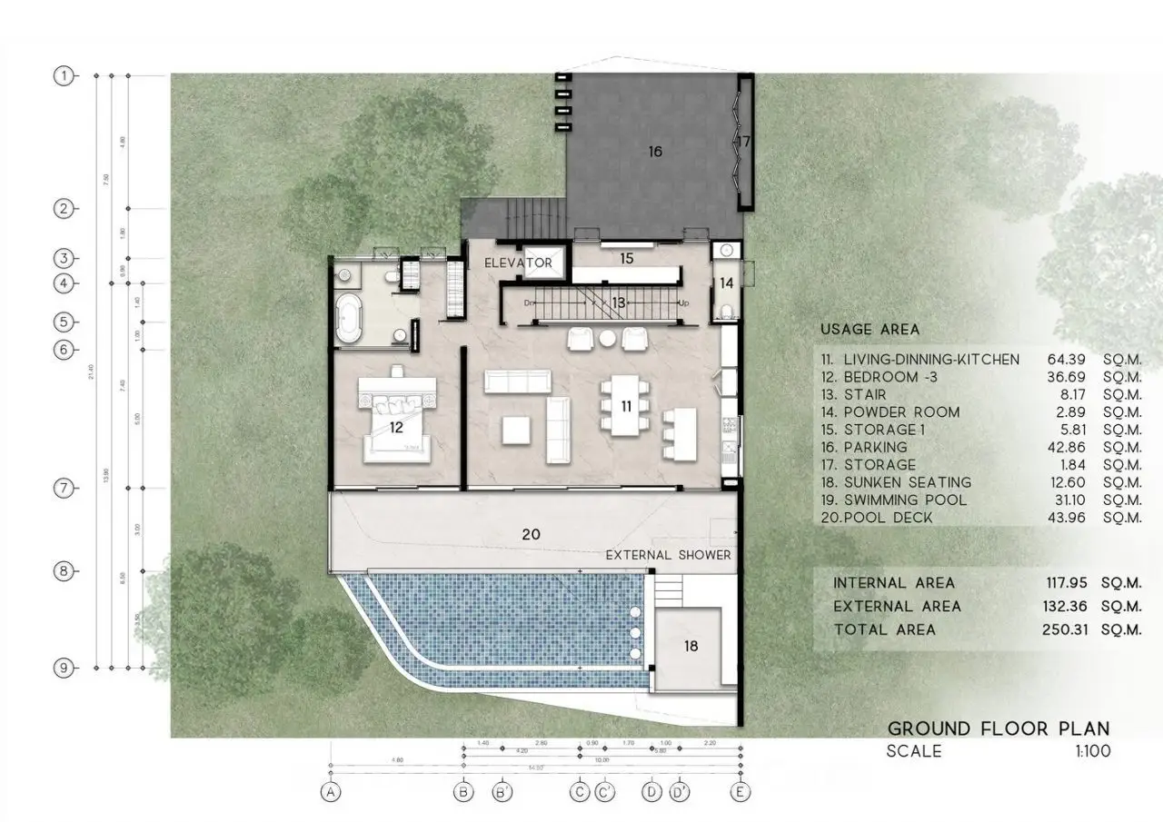 Just steps from Bangpor Beach and set on a gentle low hill, Beso Grande is the project’s premium seaview villa type—a three-storey residence featuring generous interiors, an in-villa elevator, and expansive ocean views towards Koh Phangan. The entry opens to the middle level, where an open-plan living, dining, and kitchen area flows seamlessly onto the pool terrace with an infinity pool and sunken sala. A fully equipped commercial kitchen sits discreetly at the back for professional catering or private dining.