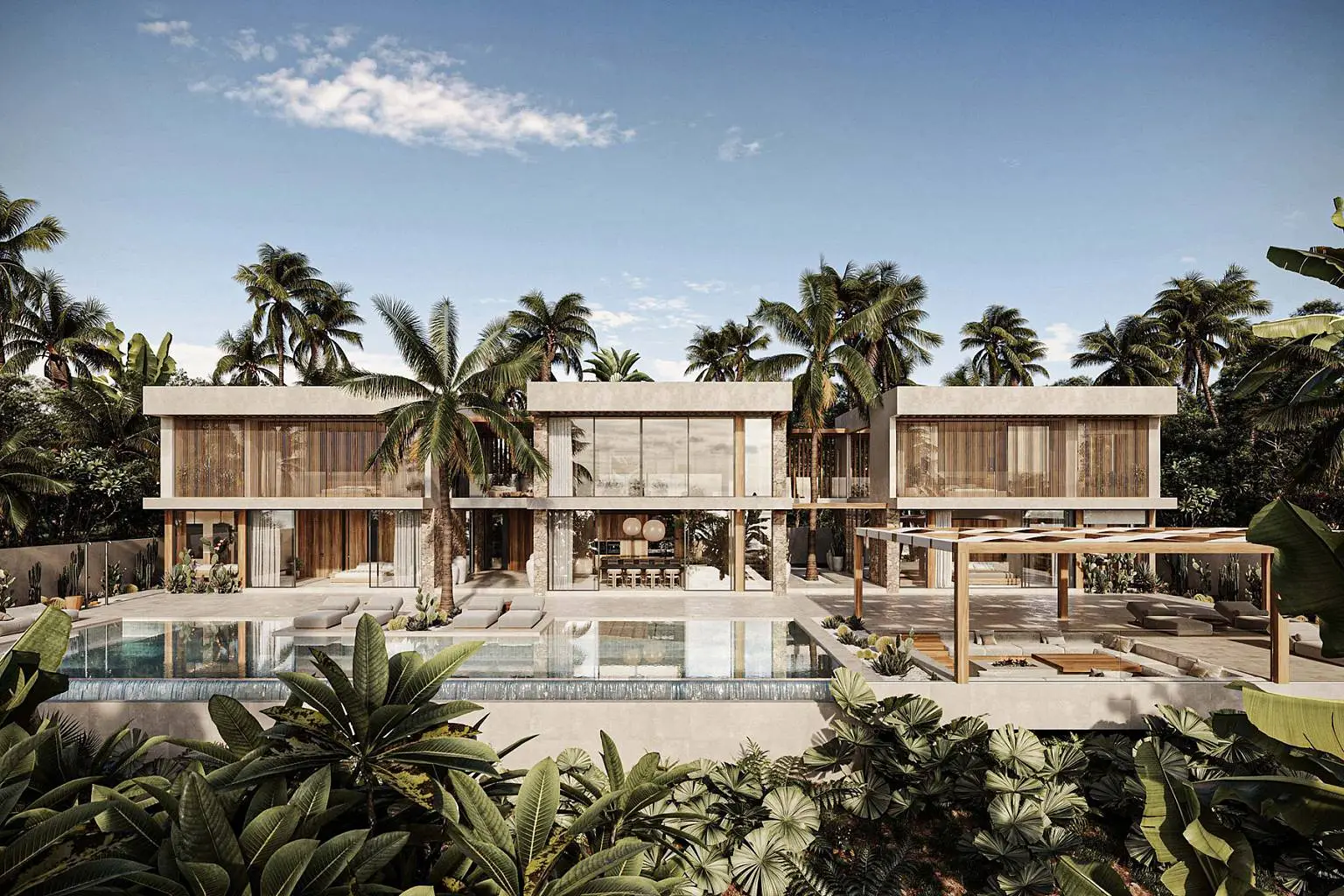The new villa design, Jaya Villa, follows the award-winning Istani Villa. It boasts ample outdoor and indoor living spaces with a unique Mediterranean-inspired design, with an area of 1,200 square meters, consists of three sections combined into a two-storey villa complete with an infinity swimming pool and cozy place with a fire. Four bedrooms, a huge living room, gym, sauna, gardens, and terraces all give you the opportunity to bask in the embrace of tropical nature without giving up the comforts of modern amenities. The smaller villa type, Istani Villa, has been replicated across several locations, showcasing the developer's commitment to delivering consistently admired designs.