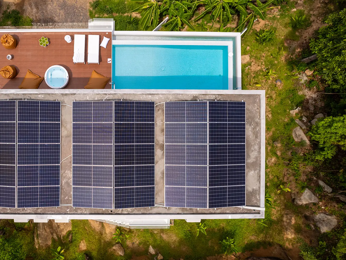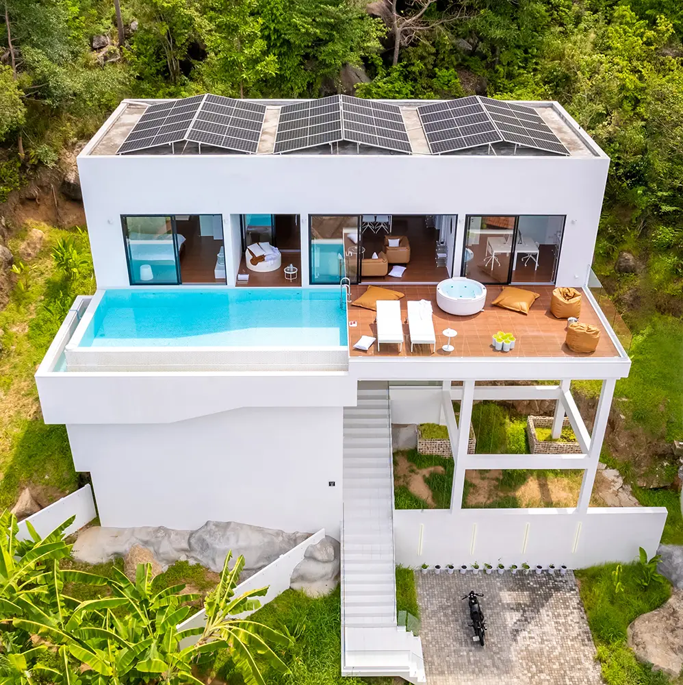 Privately positioned at the end of a quiet road in Chaweng Noi, this contemporary villa was thoughtfully designed and constructed by the owner for personal use — reflecting a deep commitment to smart living, environmental self-sufficiency, and architectural precision.