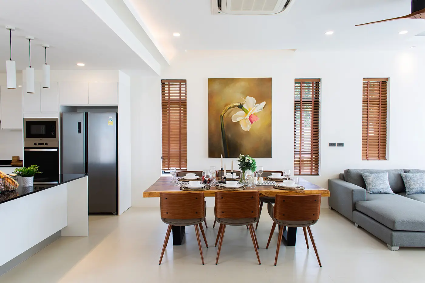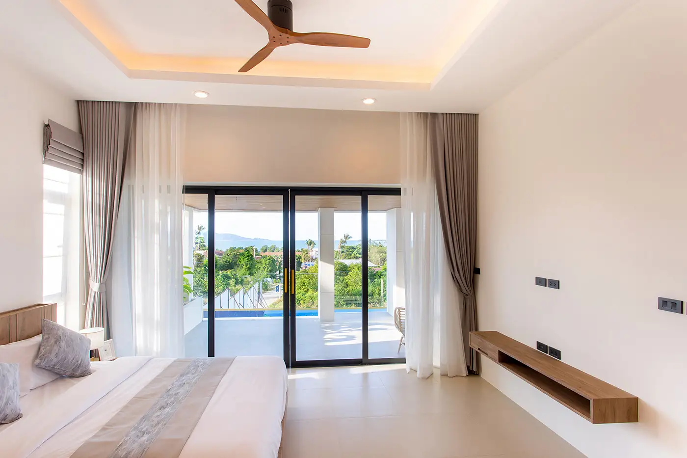 The project consists of 10 contemporary villas with easy concrete road access and is conveniently located walking distance to popular Bophut Beach and Fishermen’s village. Located on gentle sloping land, these spacious villas afford views over the surrounding tropical bush and sparkling seascapes of Bophut Bay. There are 3 types of villas to offer