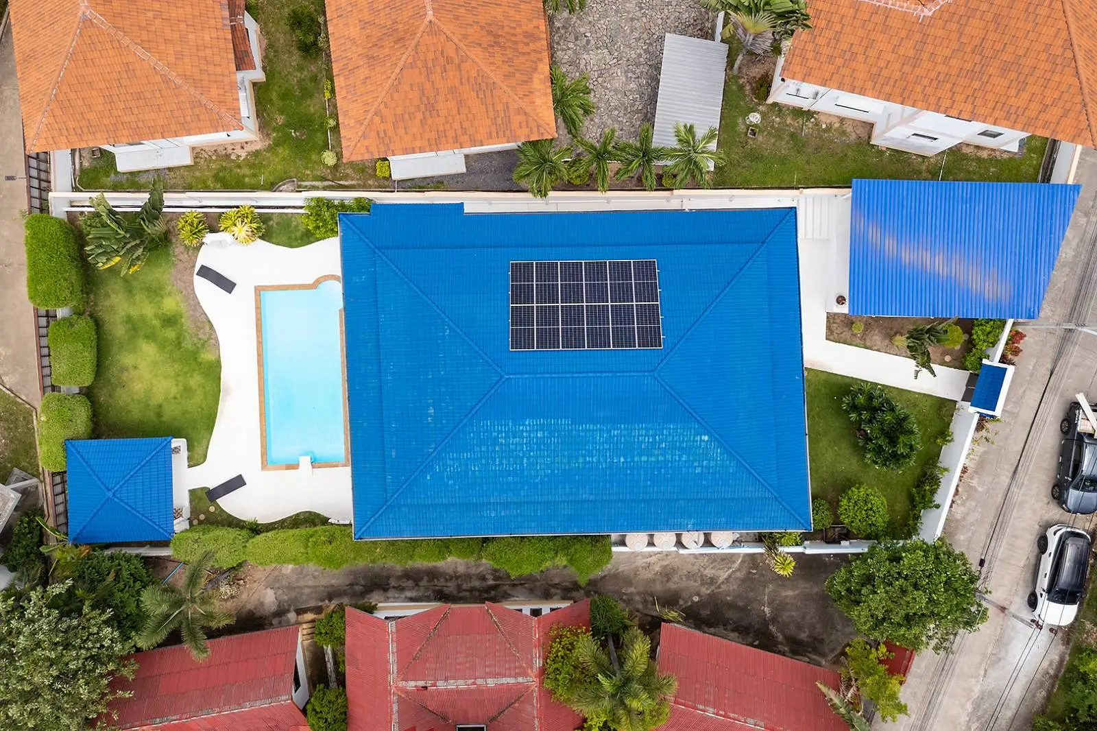 Additional features include a large storage unit located under the house, a spacious back garden, a levelled garden space next to the pool, an outdoor sala perfect for relaxation or entertaining, and covered parking for 1 car.