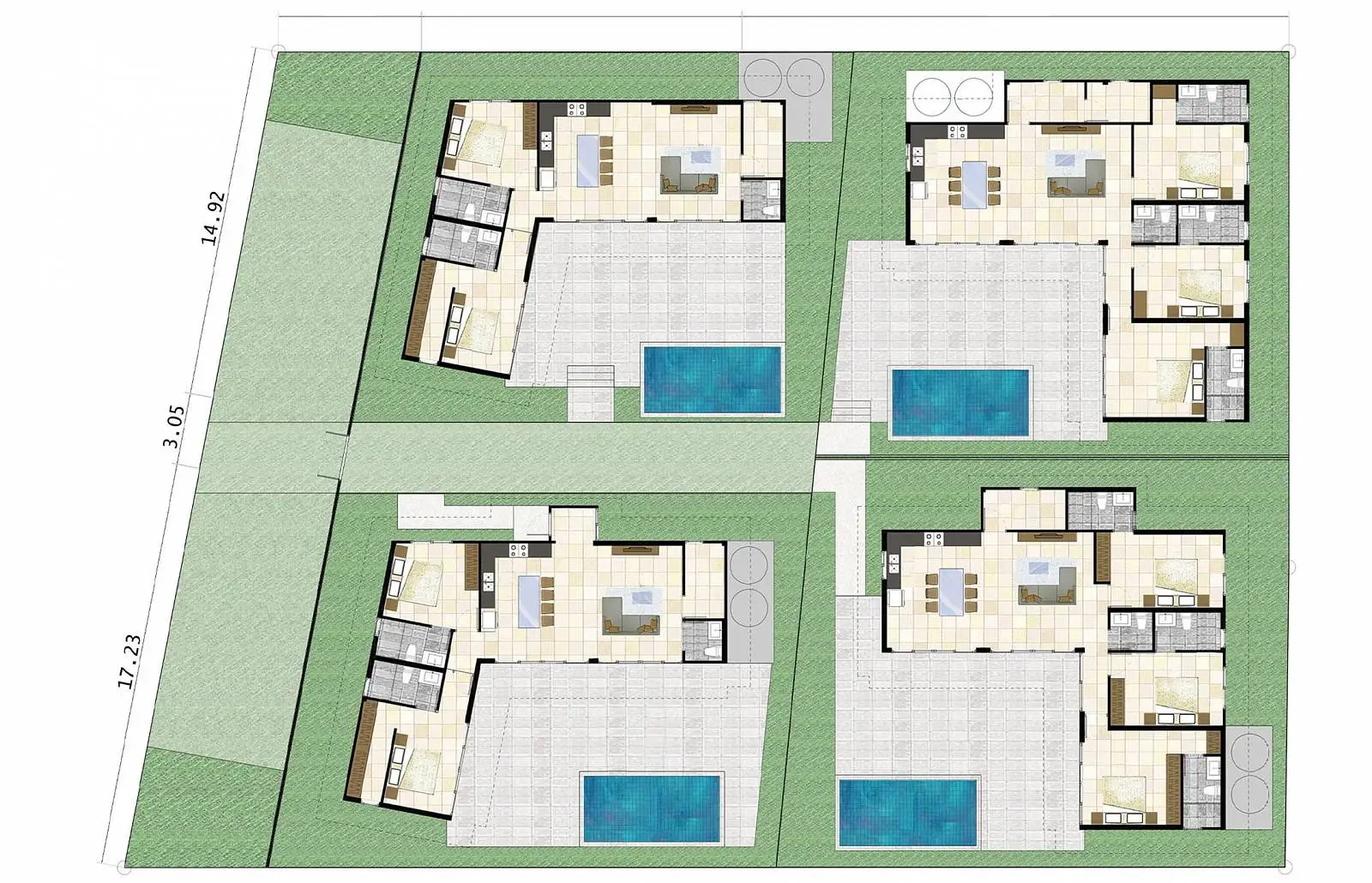 The development comprises just four private garden pool villas, ensuring a low-density and exclusive environment. Positioned in a prime neighbourhood, the project sits close to renowned five-star resorts such as The Ritz-Carlton, Koh Samui and Melati Beach Resort & Spa, reflecting the prestige of the surrounding area.