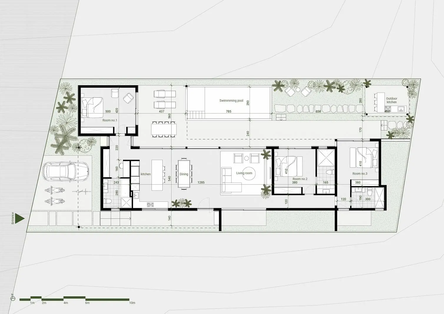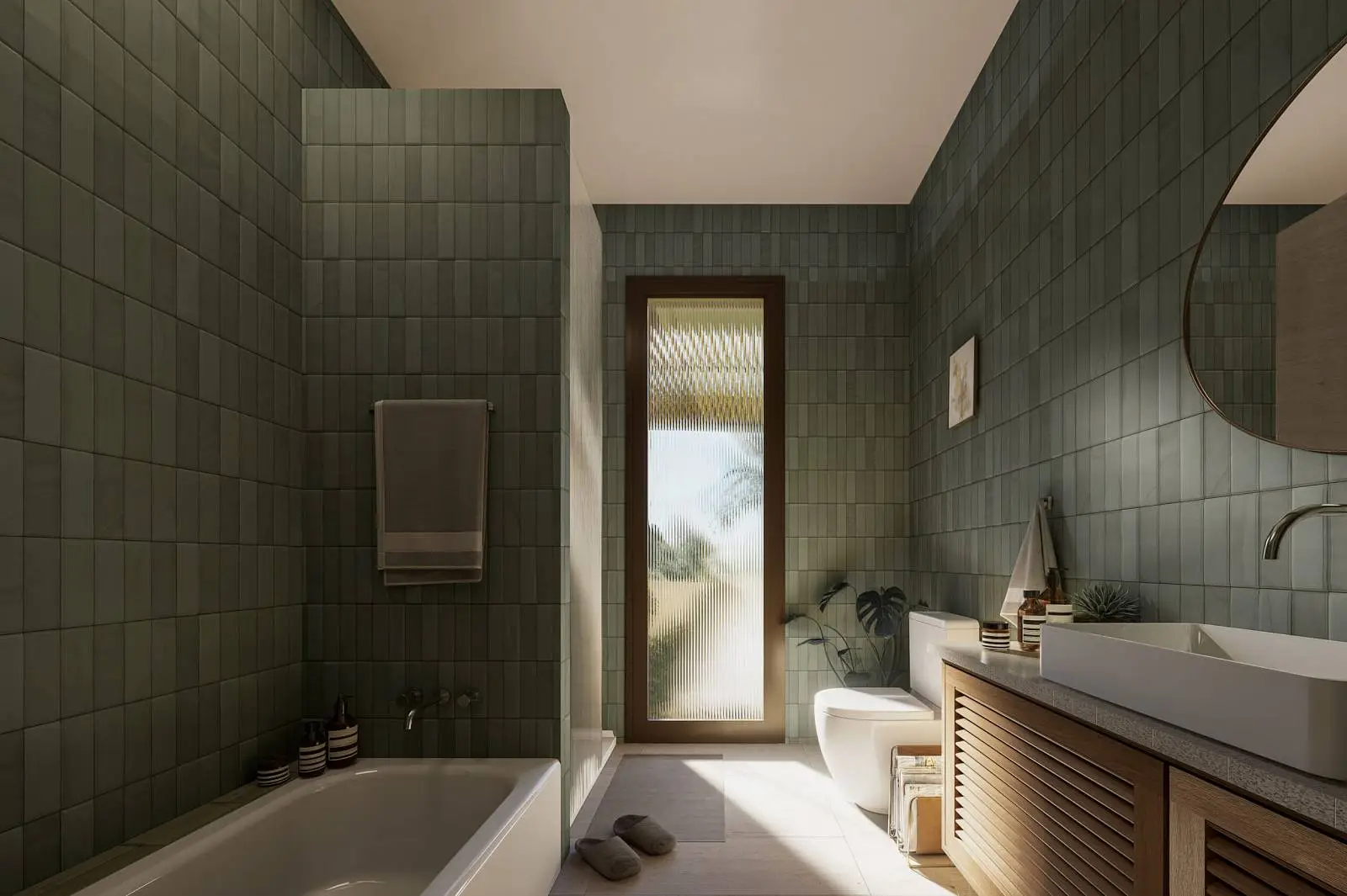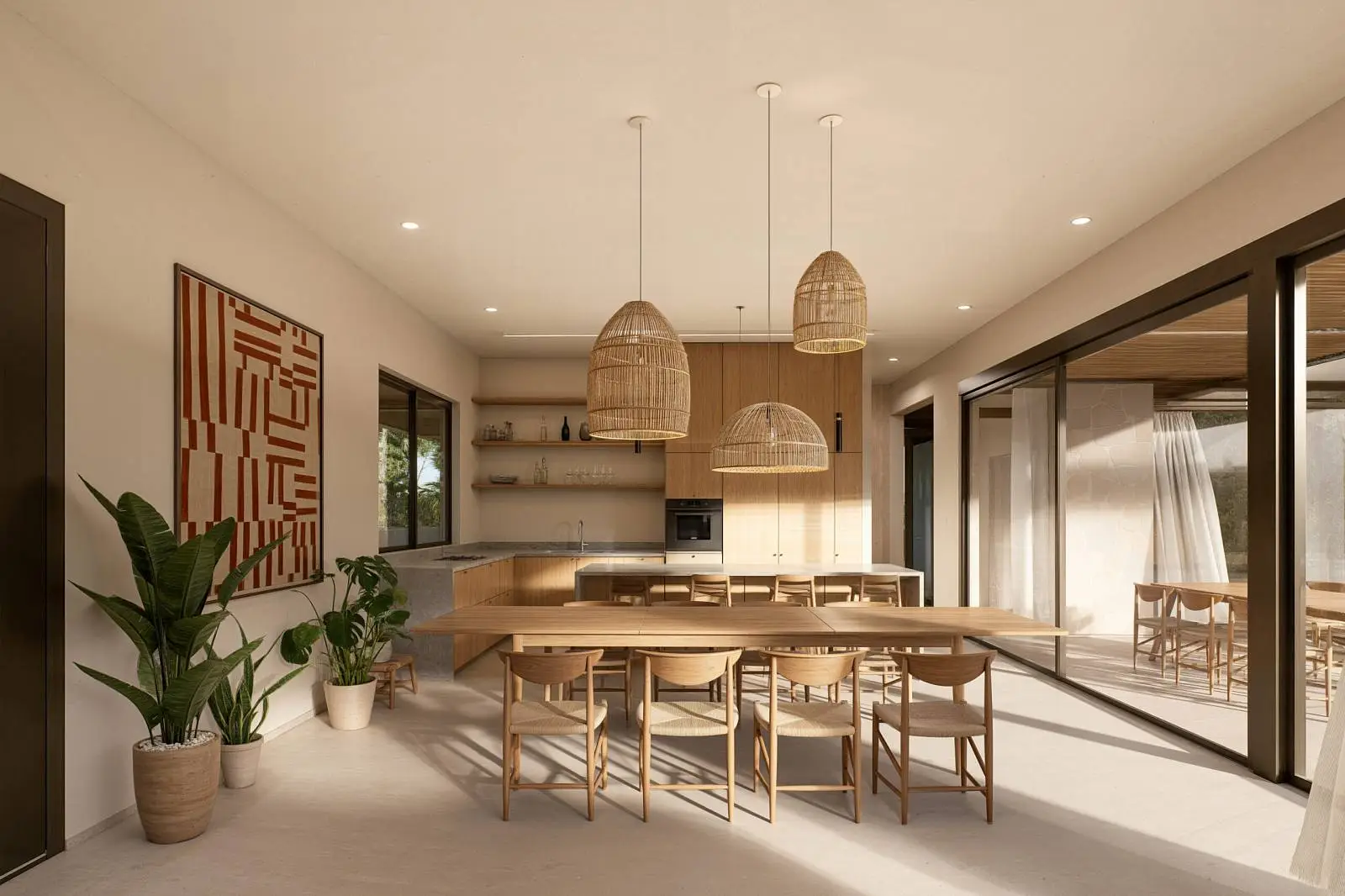 The villas feature three true master suites, each with en-suite bathrooms, alongside expansive living areas that open fully to a covered terrace and a 30 sqm infinity pool. High-quality materials such as natural stone, terrazzo, and micro cement are used throughout, creating a modern yet authentic tropical aesthetic.
