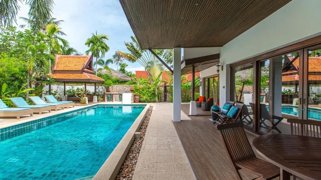 This tropical Four-bedroom villa is located at an established beachside development, the beach is just 50m away from the villa’s front door. The décor combines comfortable Thai architecture with a twist of modern living which makes a perfect holiday home. It also has an on-site beach club where you can access.