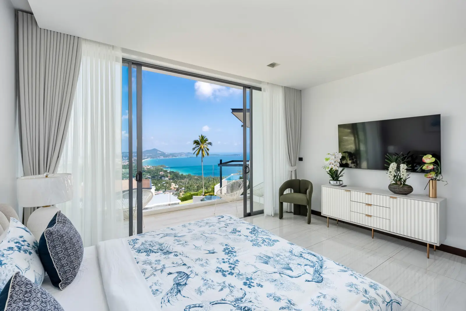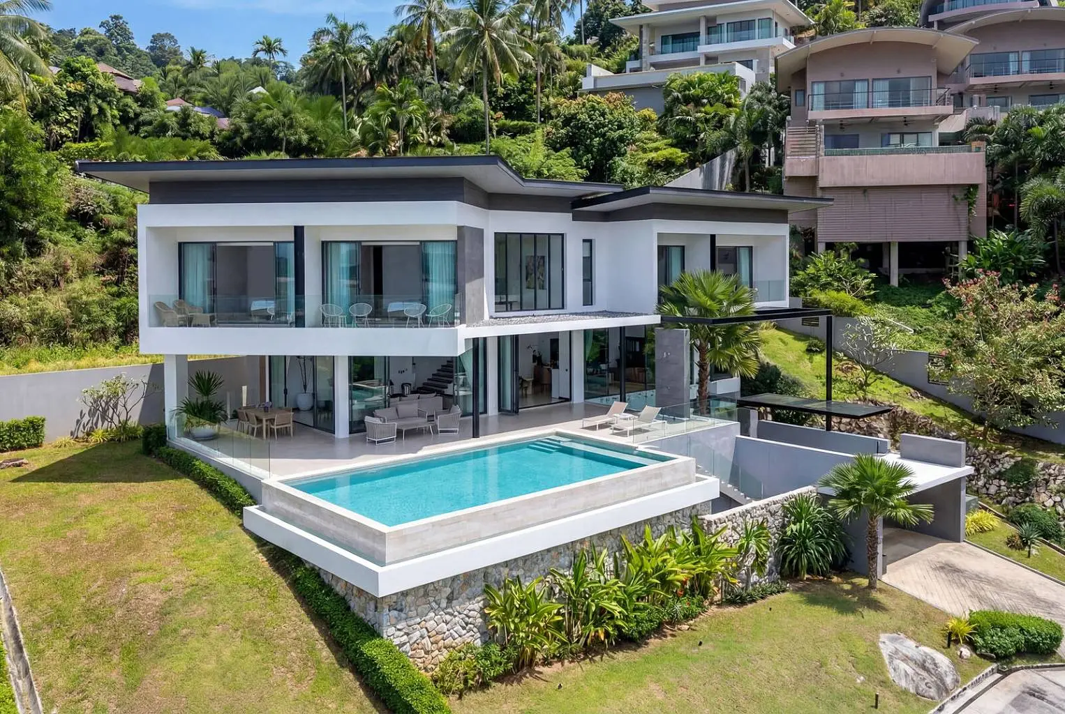 Located within one of Samui’s most sought-after hillside developments, the property combines architectural presence, privacy, and commanding views — a combination rarely available in a fully finished, move-in-ready home.