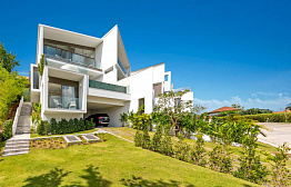 Originally built by the developer for his own family, the villa is laid out across multiple pavilions in classic Balinese style, blending privacy, open-air living, and lush garden paths. The top level features an enclosed living room pavilion adjacent to a BBQ and entertainment area, while the central pavilion houses an open-plan kitchen and dining space that flows out to the main free-form swimming pool and sea-facing terrace. On the side, the master bedroom adjoins a quiet office nook, creating a serene personal retreat.