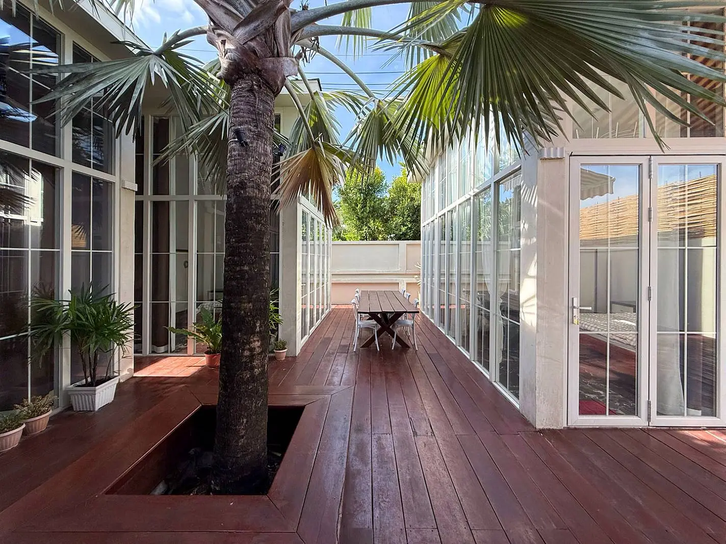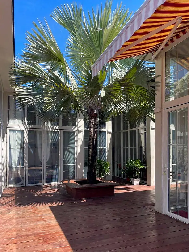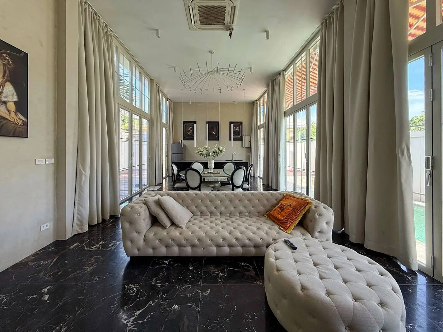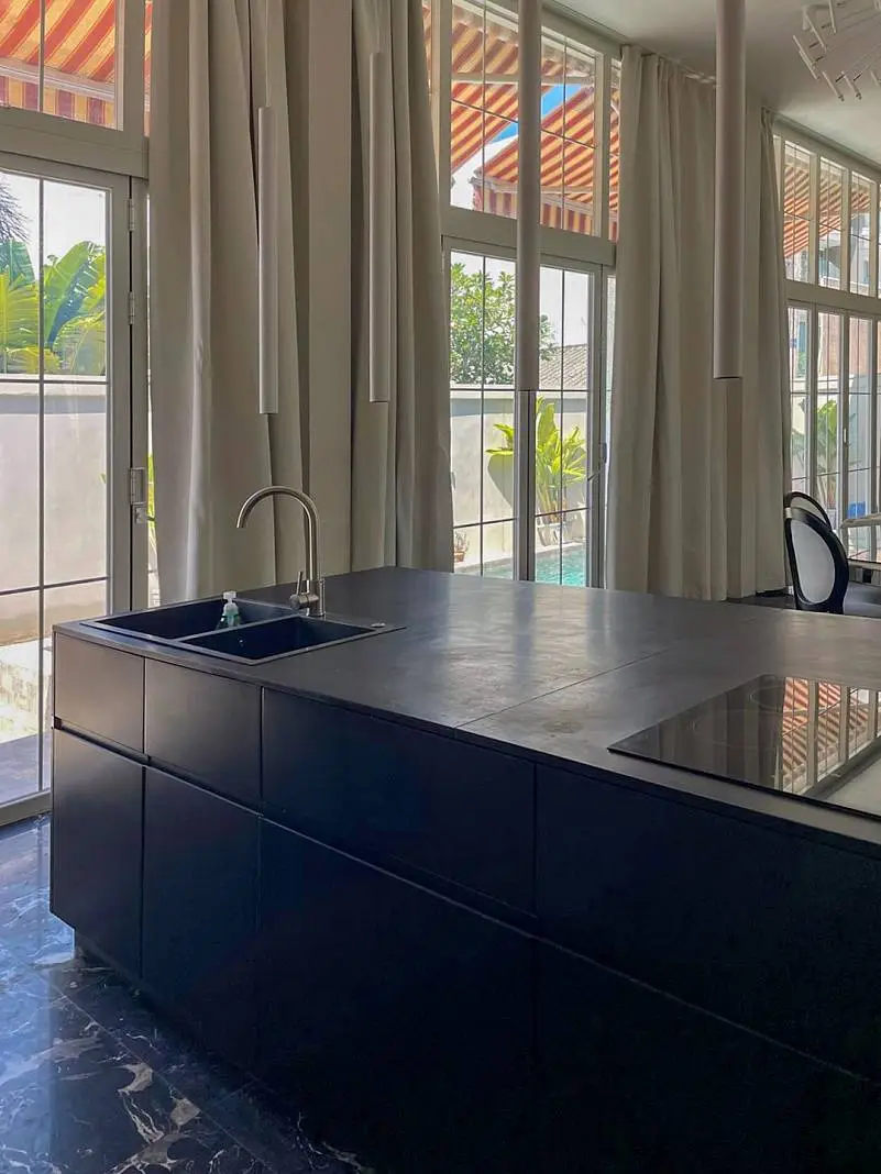 Designed and developed by an architect–interior designer, this villa stands out in the market with its use of imported materials rarely seen locally. Every detail reflects an investment in uniqueness and quality. The interiors feature soaring 4.1-meter ceilings throughout, with each bedroom strategically separated to ensure maximum privacy. Premium finishes include marble flooring throughout the villa and natural stone swimming pool tiles, while double-insulated foldable aluminium doors provide both elegance and energy efficiency.