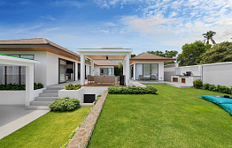 The villa's cinema room offers a cozy escape for movie nights, making it an ideal retreat for families or groups of friends. Beyond the villa, a beautifully manicured garden stretches towards the ocean, providing a serene setting where you can unwind, read a book, or meditate to the soothing sound of the waves.
