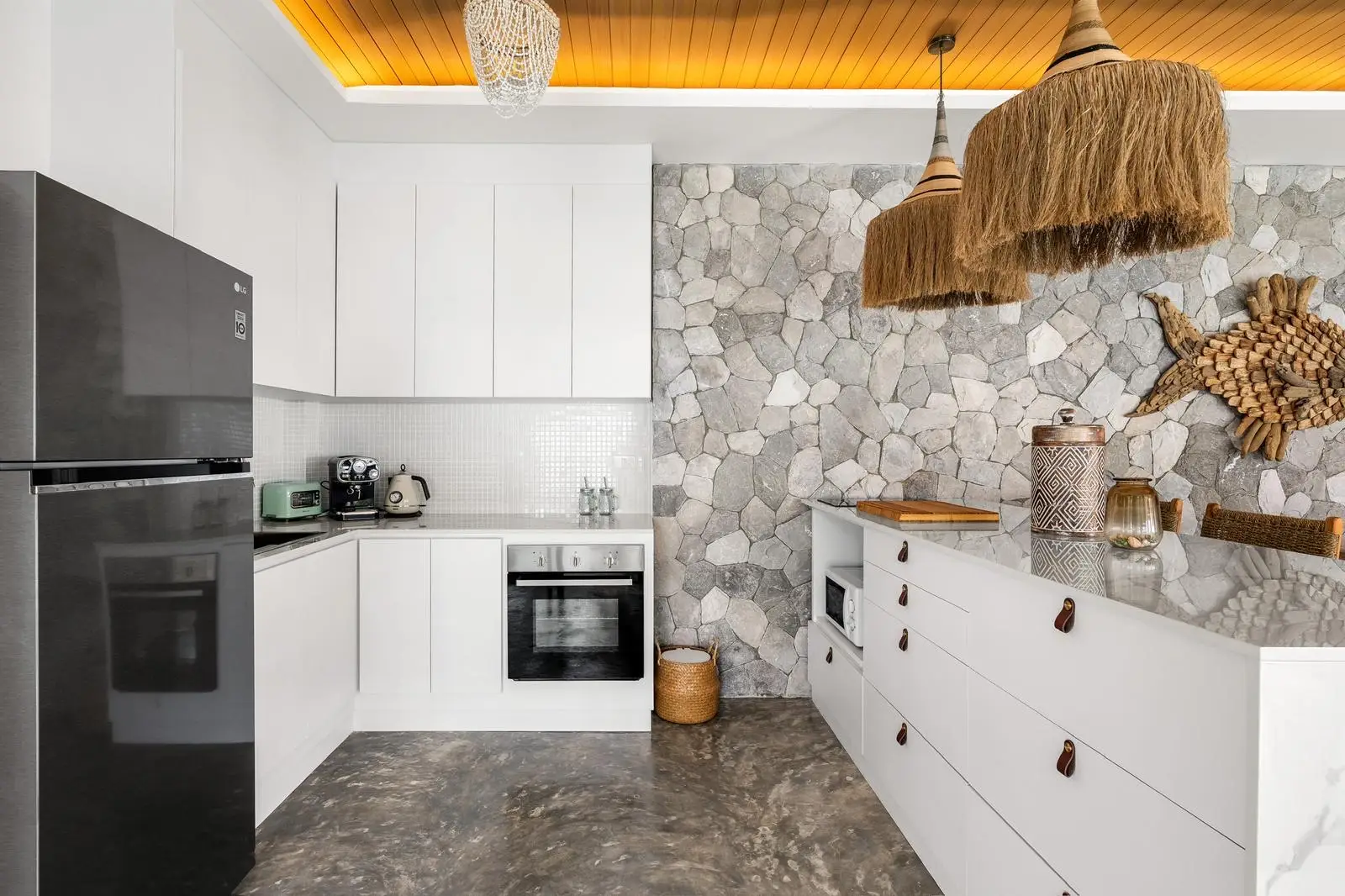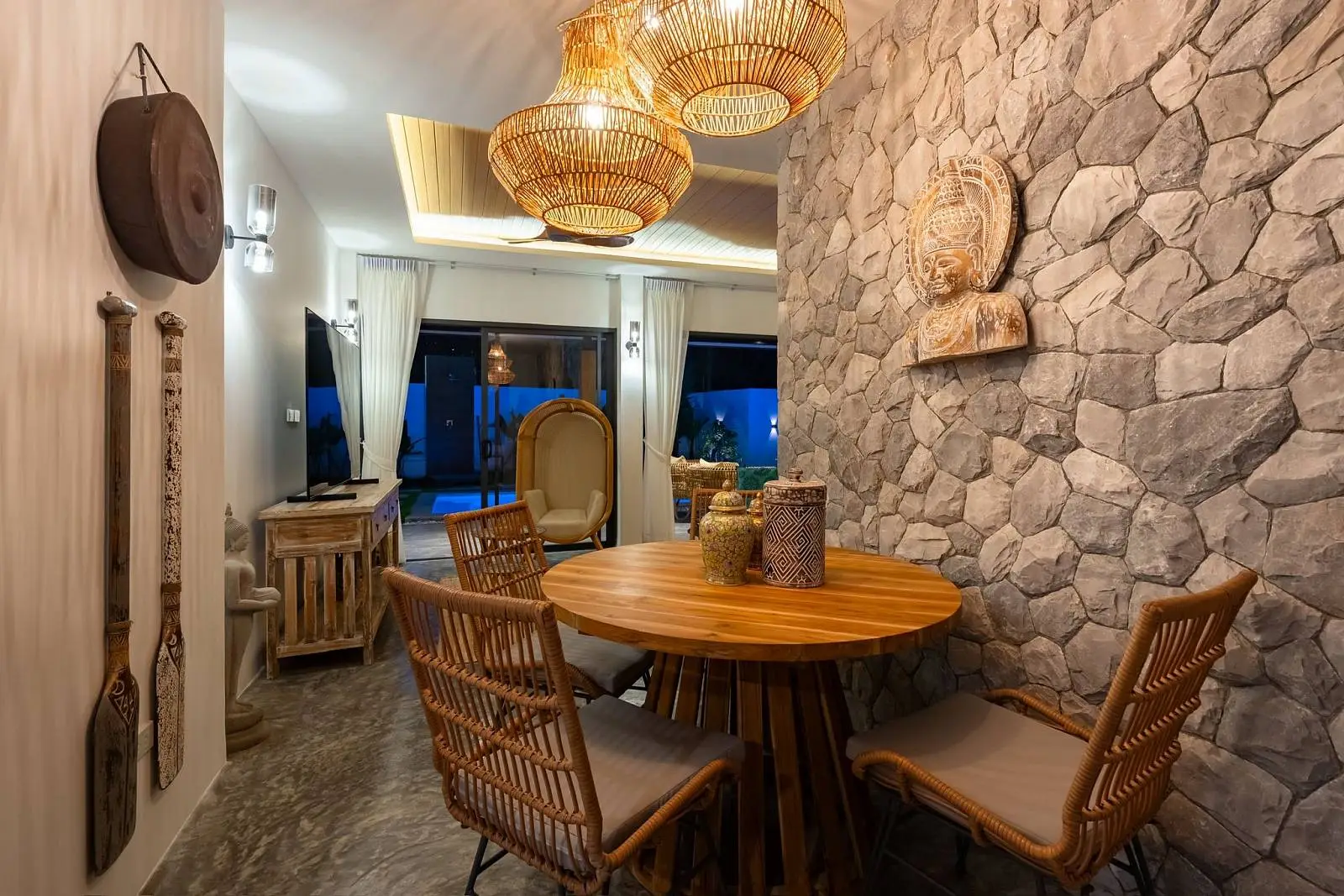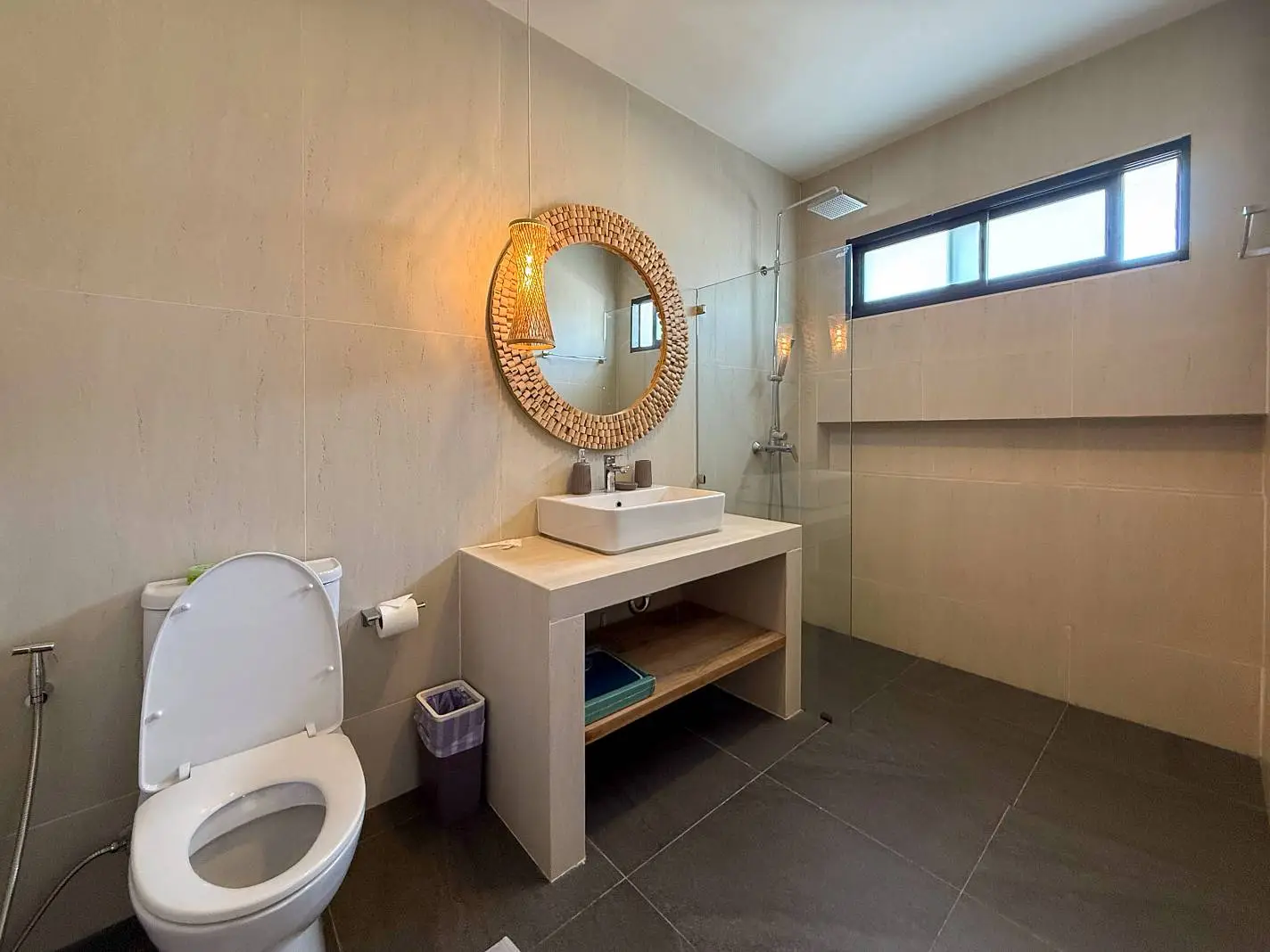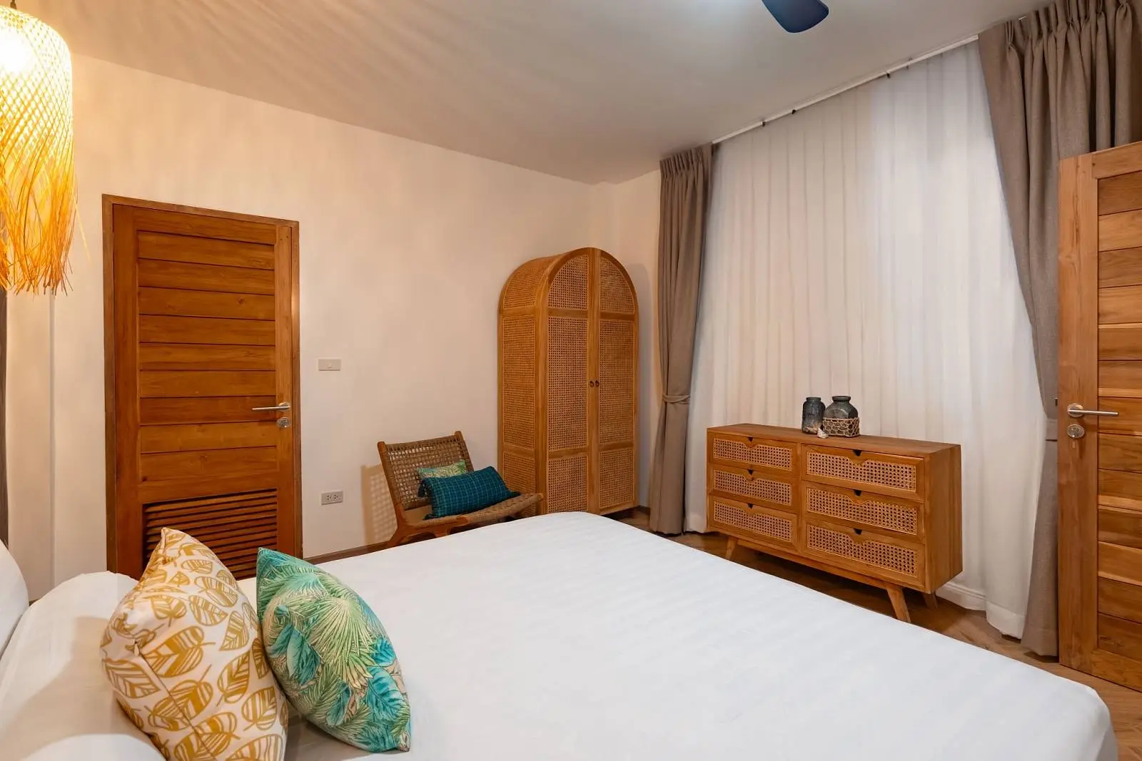 The master bedroom with ensuite bathroom is positioned behind the kitchen and enjoys a serene outlook over the rear garden, creating a quiet and private space. Additional features include a dedicated laundry area on the side of the house, stylish furnishings throughout, and a strong rental history that makes the villa attractive not only for lifestyle buyers but also as an income-generating investment.