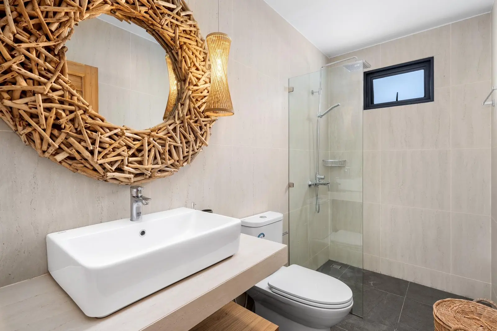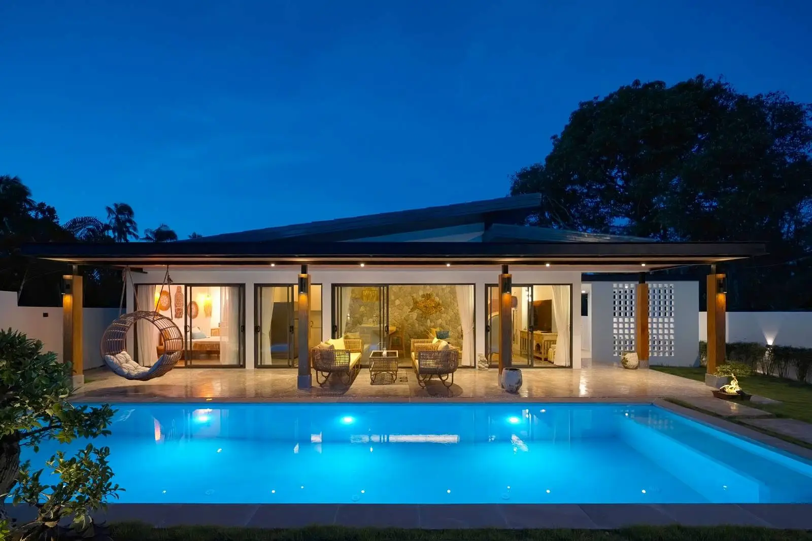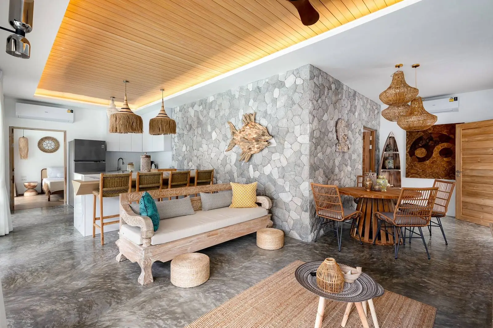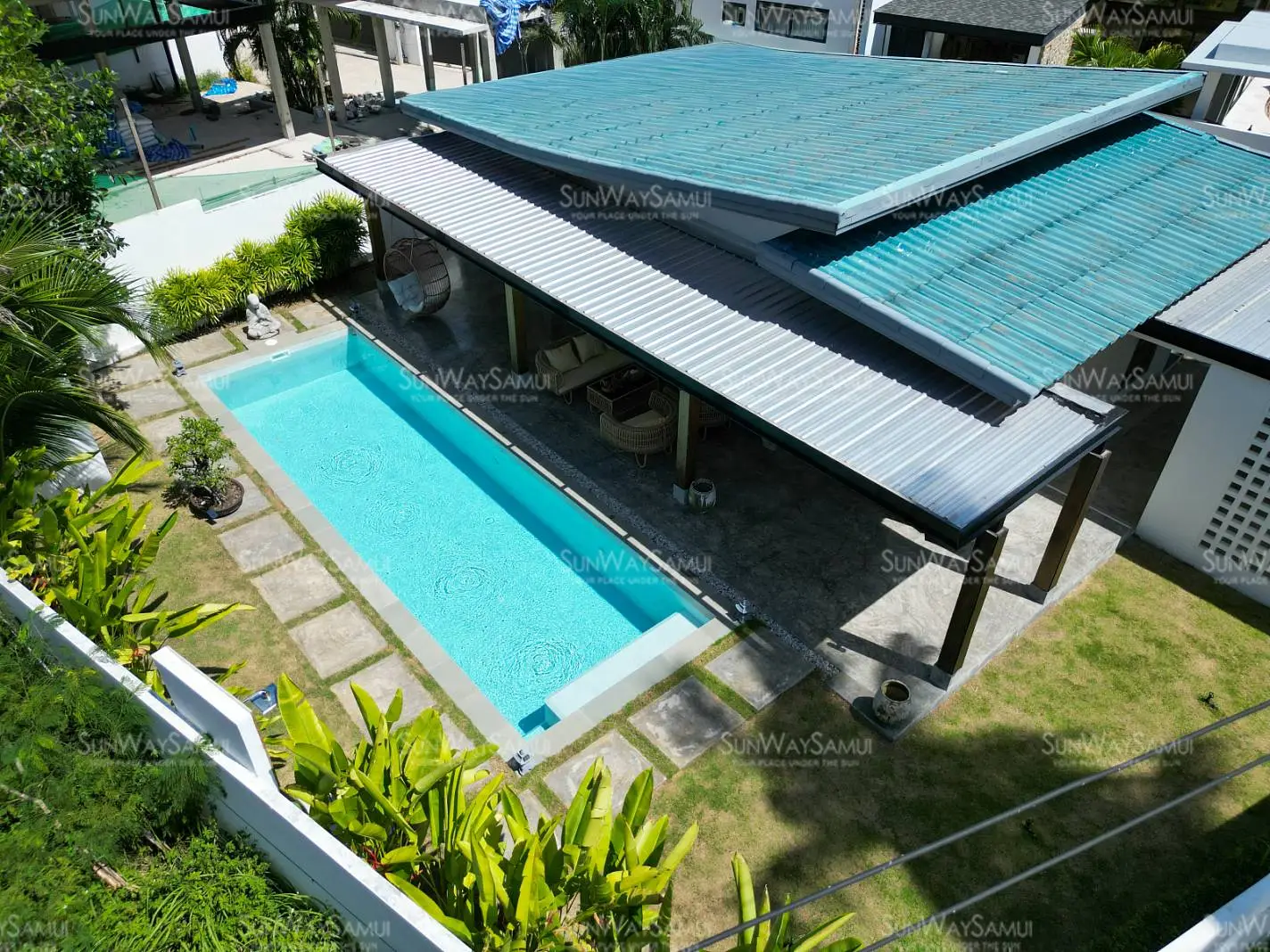 This beautifully renovated 2-bedroom garden pool villa offers beachside living within an established villa community in the charming Bang Por area. Just a 250-meter walk brings you to the beach and coastal road lined with local beachfront restaurants and cafés. The beach itself is sandy, swimmable year-round, and ideal for long scenic walks.
