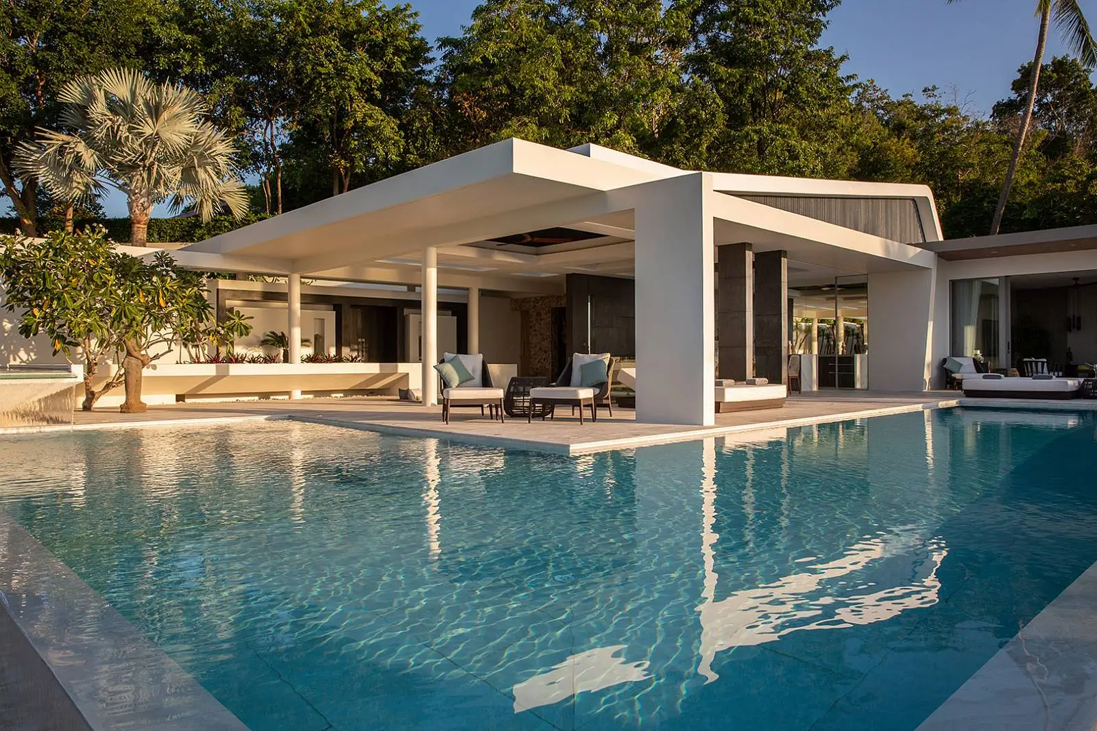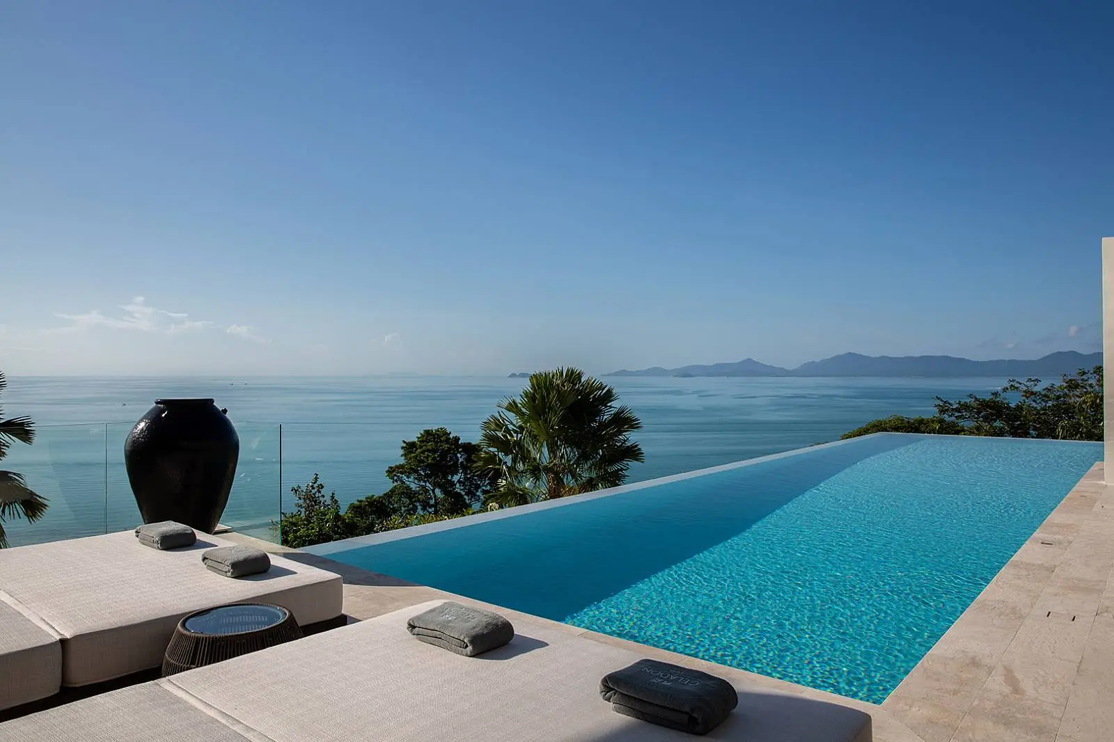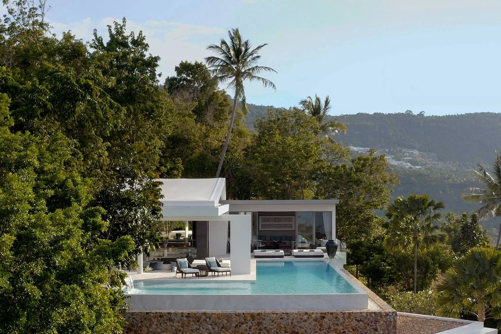 Villa Celadon is one of the most iconic and architecturally striking properties in Koh Samui, designed by the renowned architect Gary Fell of GFAB Architects. Now back on the market after a comprehensive renovation, expertly completed by the current owner with impeccable vision and taste, this villa combines luxury and modern design. Located in a serene neighborhood in Bangpor, it enjoys the utmost privacy while offering breathtaking panoramic views of the ocean and Koh Phangan.
