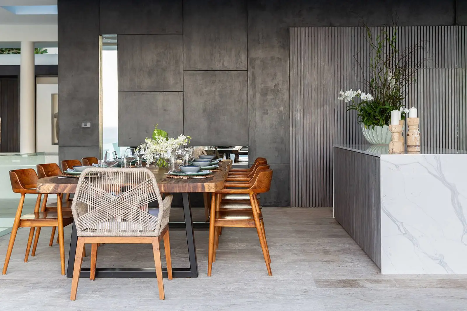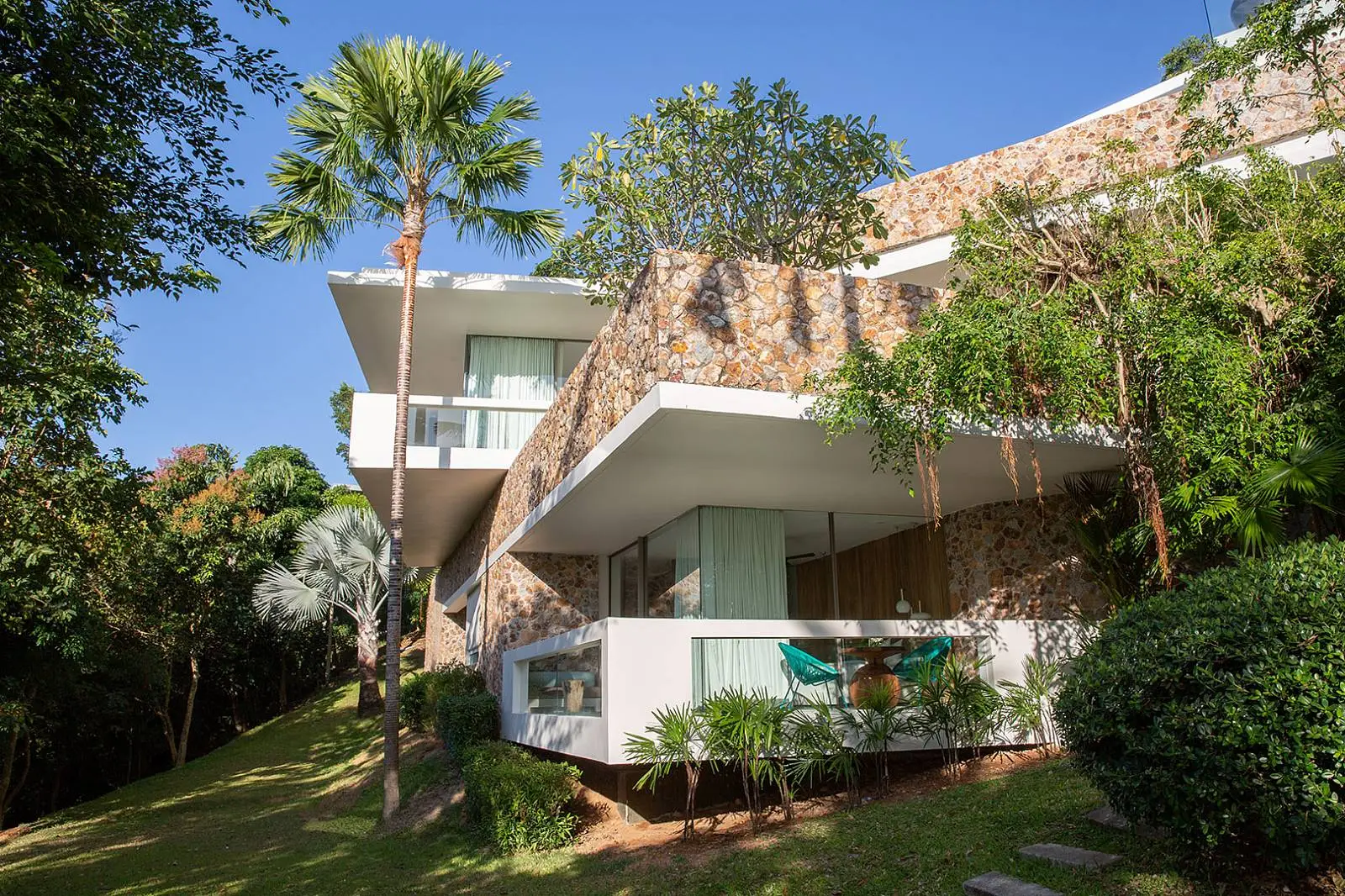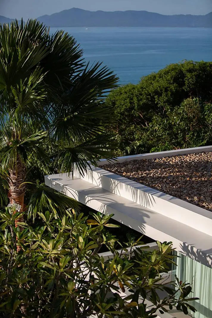 Perched near the mountain top of its plot, Villa Celadon has been thoughtfully designed to protect its stunning seaviews and maintain privacy by preserving the lush greenery on the lower part of the land. This three-level villa is a testament to Gary Fell's signature style of merging contemporary architecture with natural beauty, creating an extraordinary island retreat.