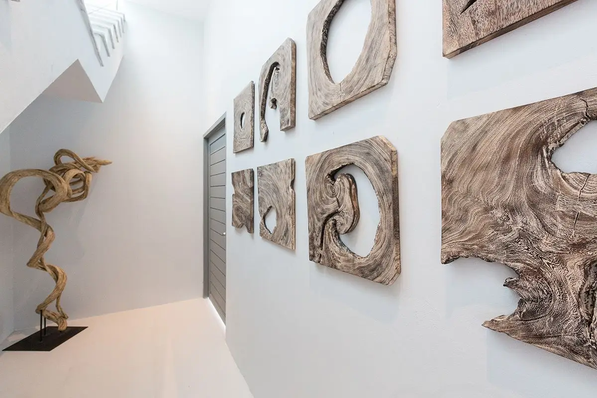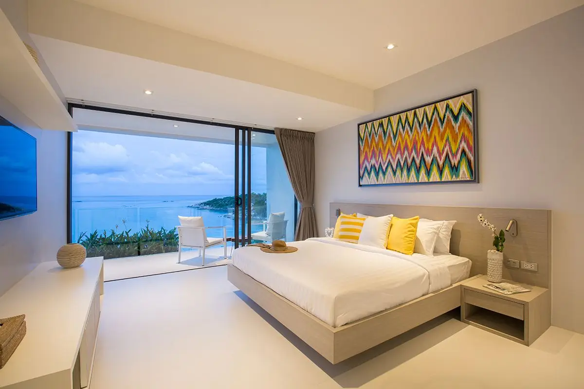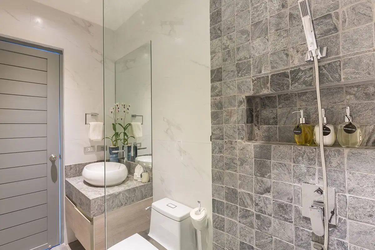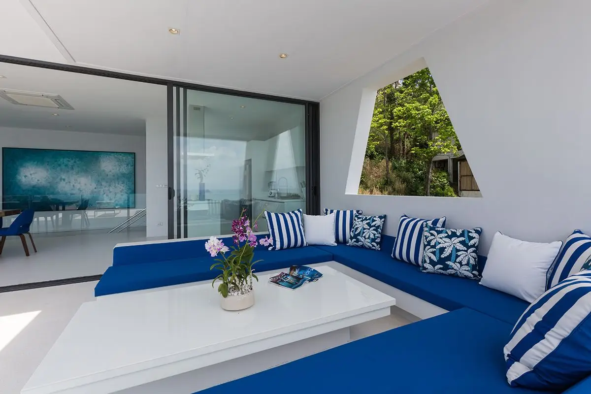 The villa comes with a swimming pool and a spacious pool deck with cosy day beds. All four bedrooms of the villa are equipped with all the necessary amenities, including cable TV, and have ensuite bathrooms with rain showerheads. The slat doors of the bedrooms invite a quiet murmur of the waves to soothe you while you are relaxing and enjoying yourself. There is a dining area large enough to comfortably accommodate eight guests that adjoins a European-style kitchen. The villa has Wi-Fi coverage and air-conditioning in all rooms. There also is a garage for two cars and an additional room that can be turned into a gym or a study.