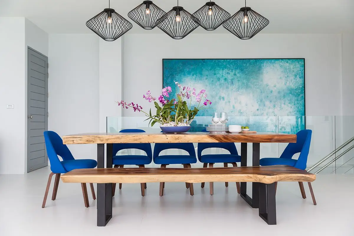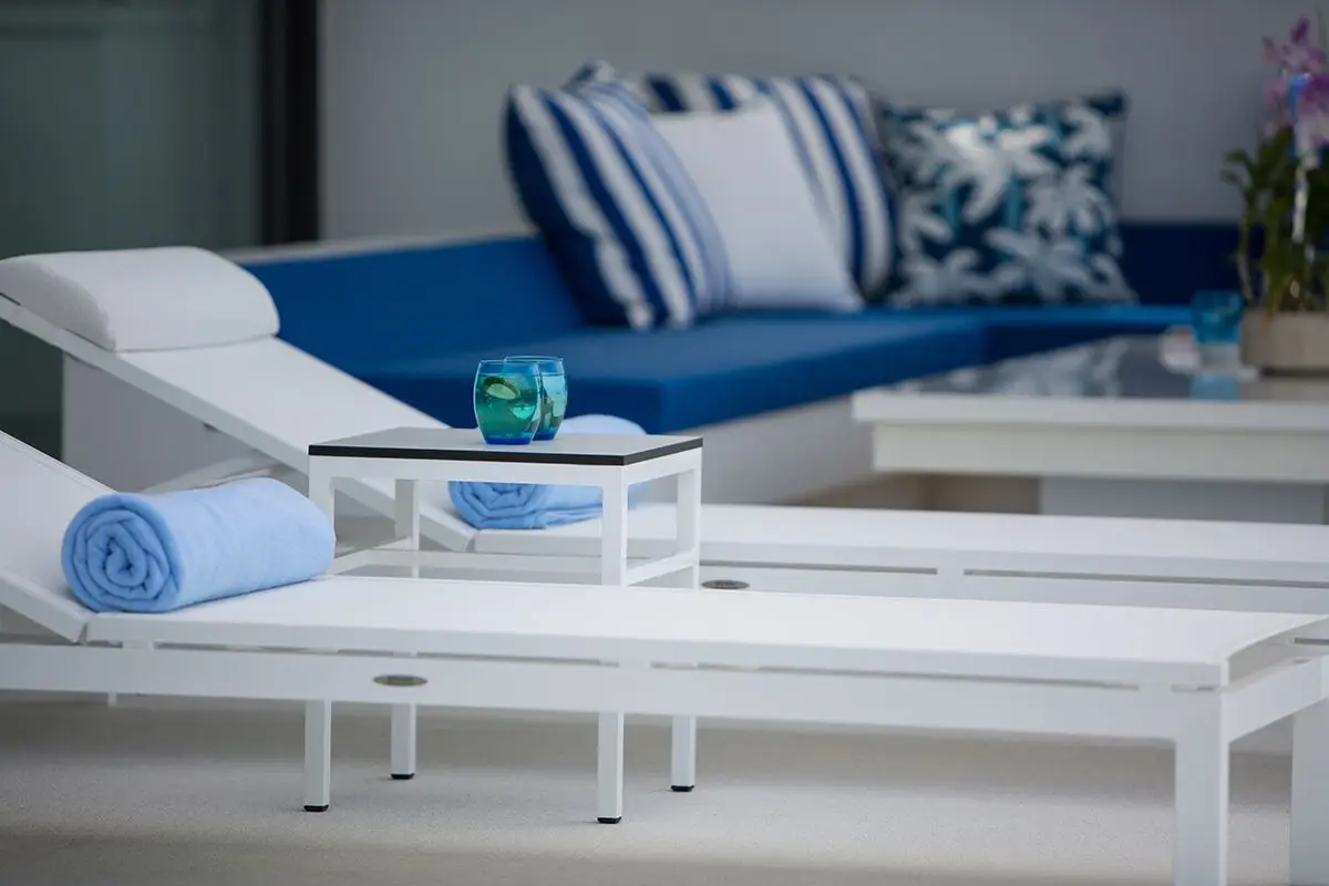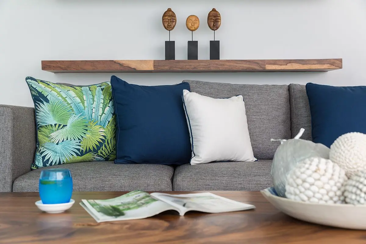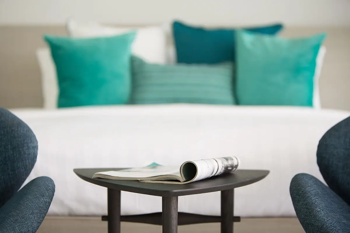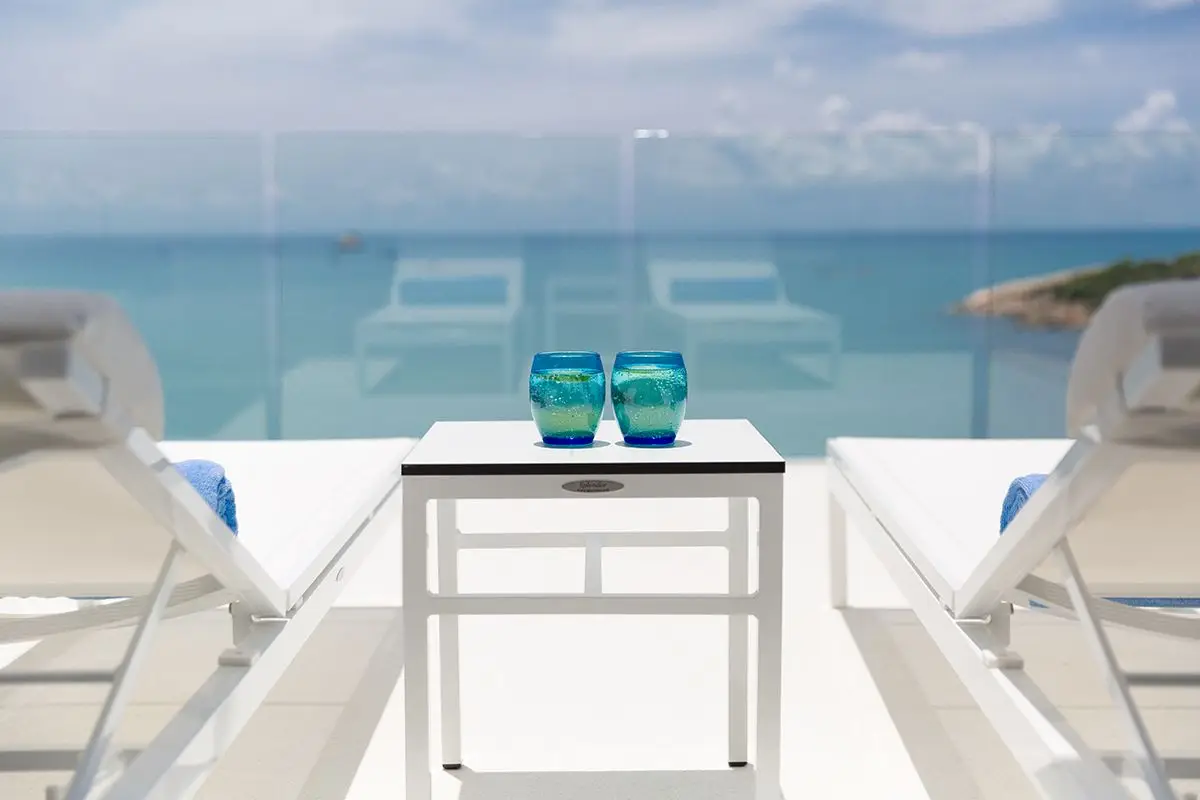 The villa comes with a swimming pool and a spacious pool deck with cosy day beds. All four bedrooms of the villa are equipped with all the necessary amenities, including cable TV, and have ensuite bathrooms with rain showerheads. The slat doors of the bedrooms invite a quiet murmur of the waves to soothe you while you are relaxing and enjoying yourself. There is a dining area large enough to comfortably accommodate eight guests that adjoins a European-style kitchen. The villa has Wi-Fi coverage and air-conditioning in all rooms. There also is a garage for two cars and an additional room that can be turned into a gym or a study.