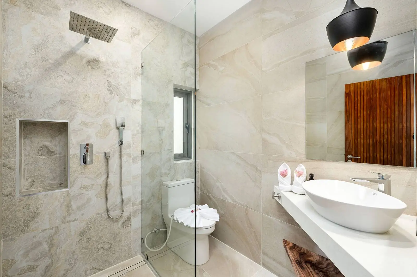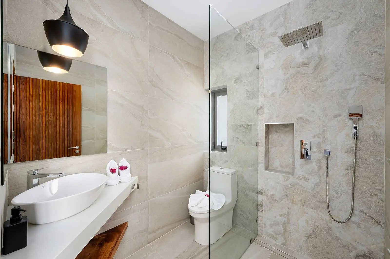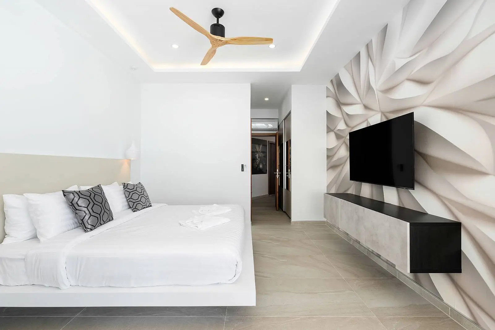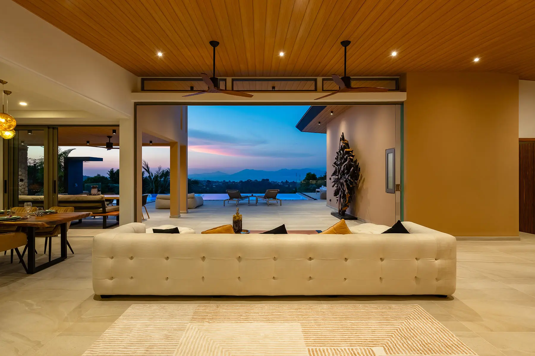 Outside, the pool terrace boasts a magnificent 12-meter infinity swimming pool and a sunken sala with outdoor seating—a perfect retreat for relaxation and entertainment. For ultimate privacy, the master bedroom occupies the floor above, complete with a private balcony and bathtub.