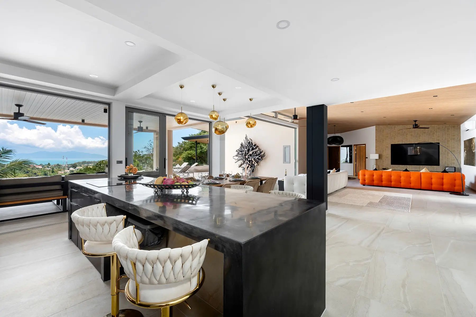 Experience luxury living at Villa Kelapa, a stunning new 4-bedroom seaview villa nestled in the sought-after Bophut Hill. Unlike other properties on the hill, Villa Kelapa boasts easy accessibility from the island ring road, avoiding complicated mountainous routes. Centrally located, it offers proximity to all local amenities, including international schools, hospitals, the airport, piers, and the charming Fishermen's Village.