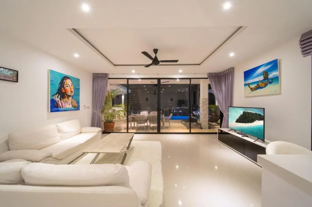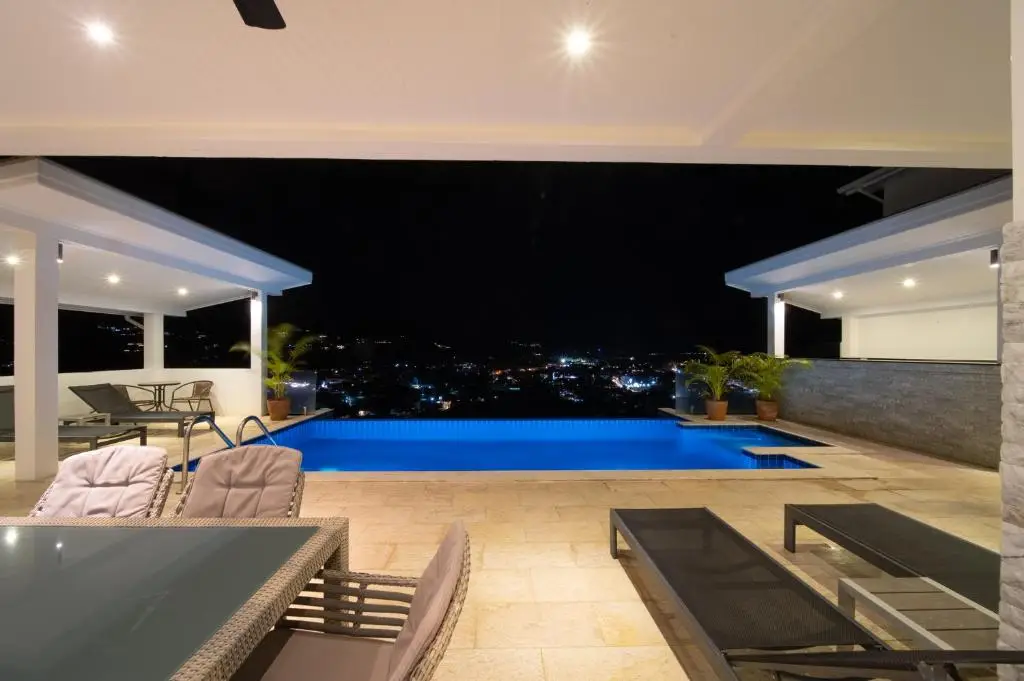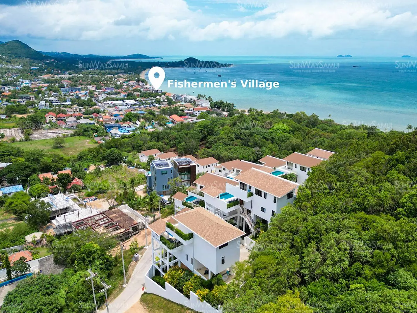 The location is one of the villa’s greatest assets — a unique neighbourhood with easy access to Fisherman’s Village via the temple road, unlike most hillside properties in Bophut that require long drives up steep mountain roads.