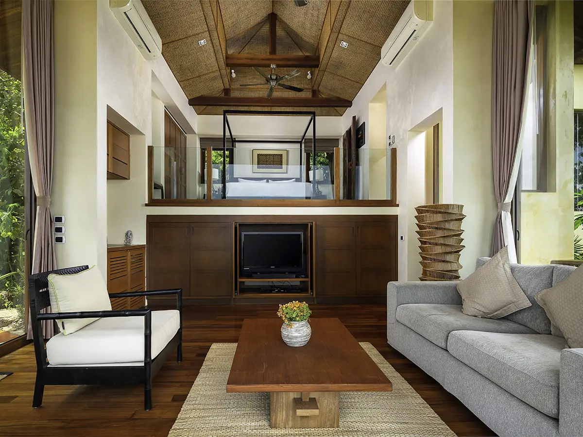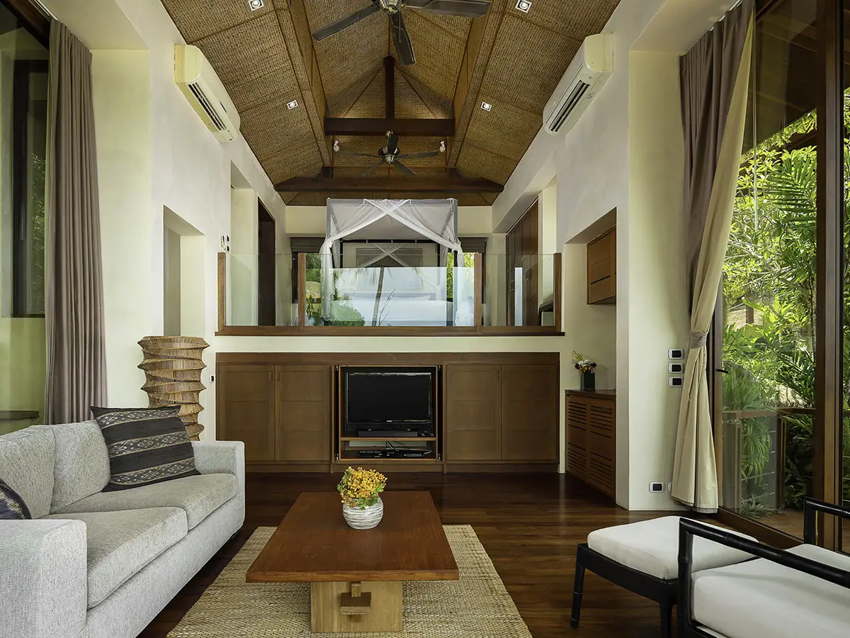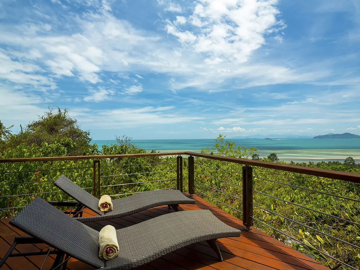 Villa Sila Varee is a five-bedroom luxury villa located in the exclusive Santikhiri Estate in southern part of Koh Samui. The villa was built to integrate Samui’s dense tropical forests and panoramic views tropical island style.
